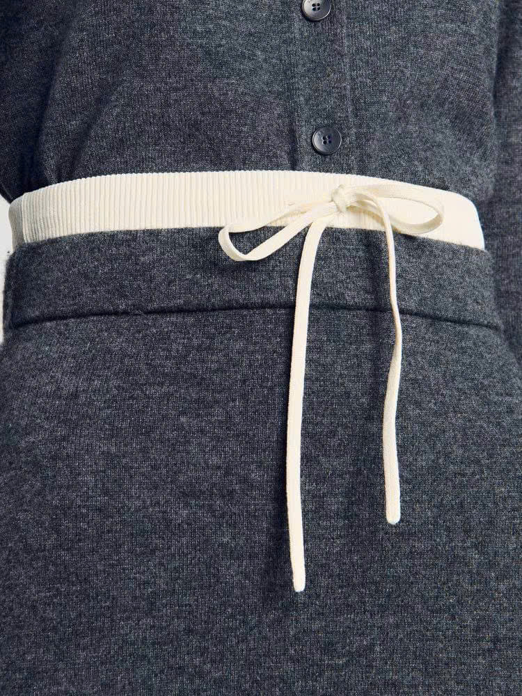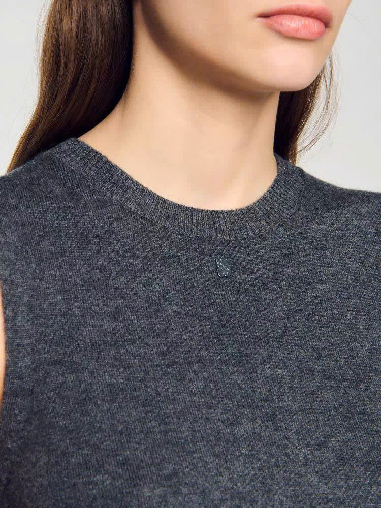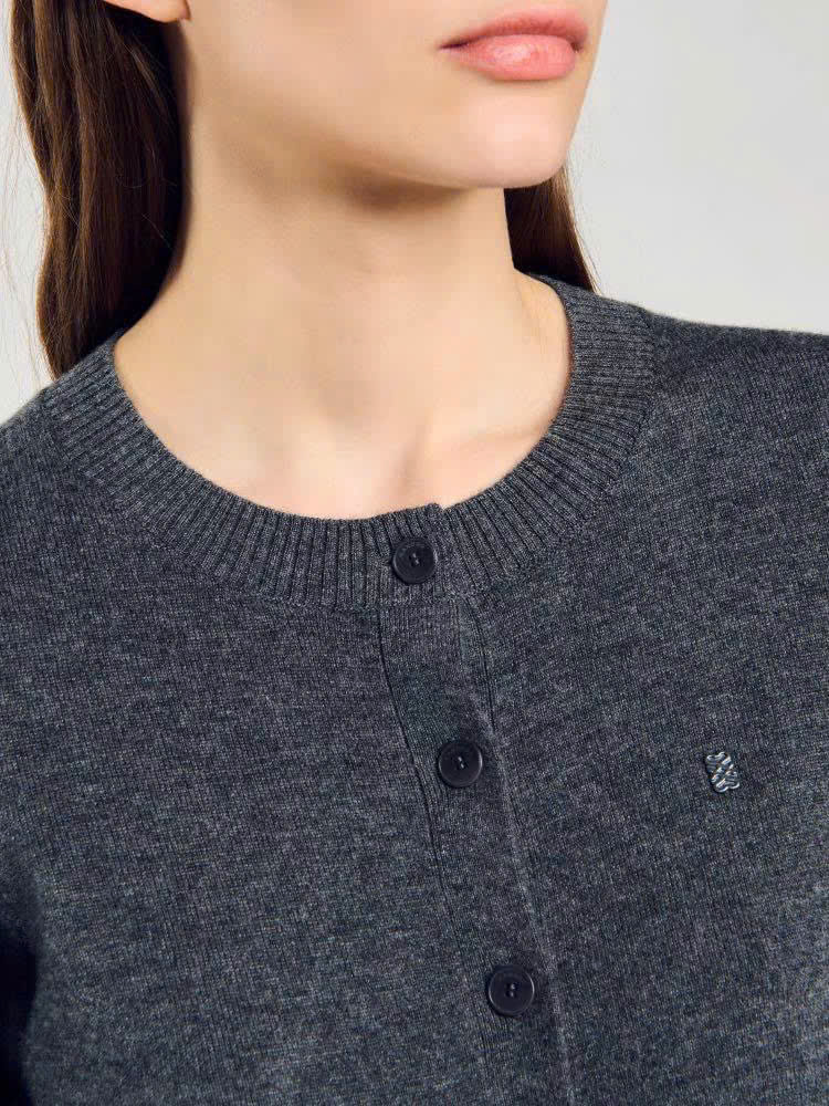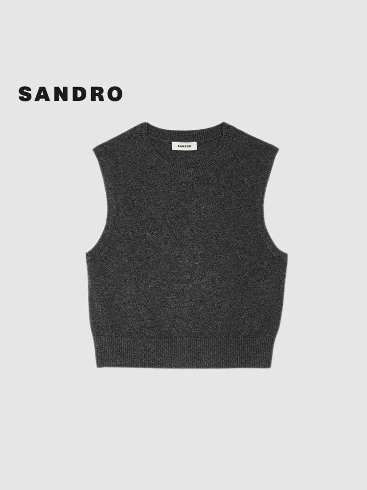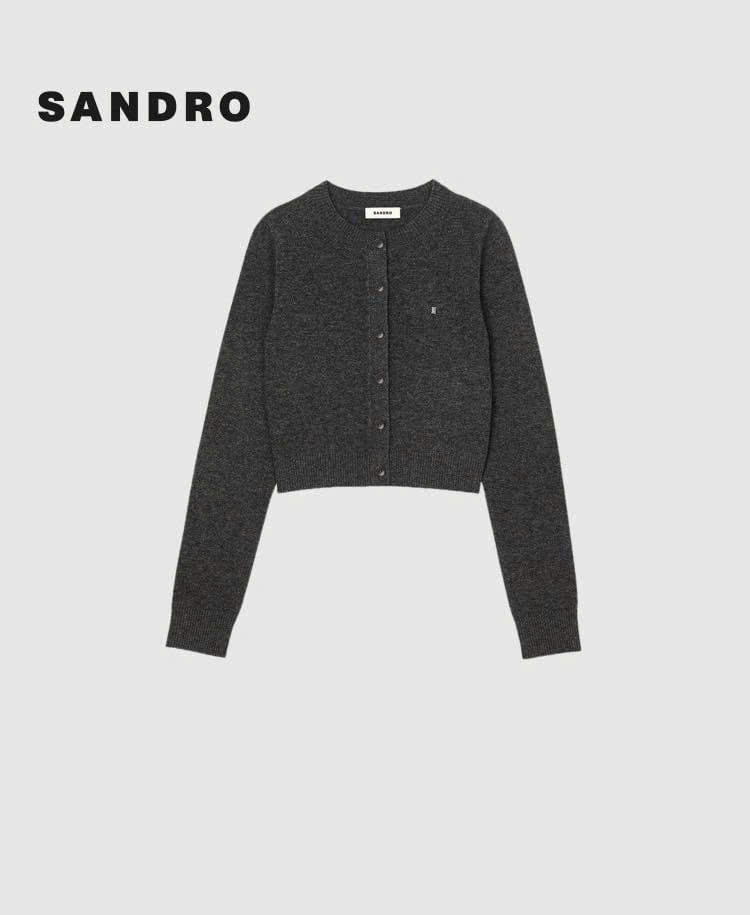 Áo khoác len Sandro dệt kim 2 hàng khuy viền trắng cổ tròn