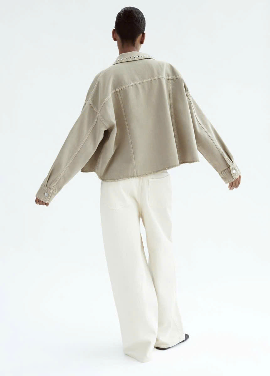 Áo khoác len Sandro dệt kim 2 hàng khuy viền trắng cổ tròn