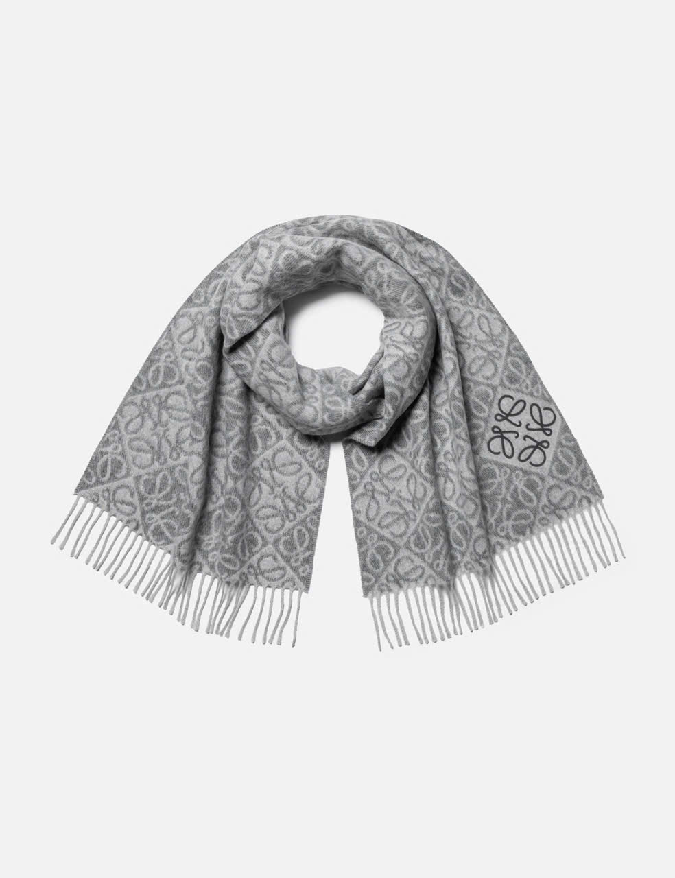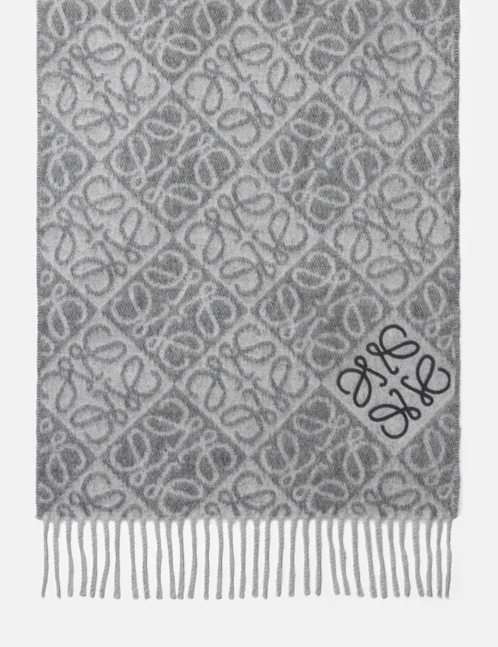 Khăn choàng jacquard len và cashmere hai mặt với họa tiết đảo chữ hai tông màu. 40 cm x 178 cm Mép tua rua Thêu đảo chữ chần bông ở góc cm in Màu sắc Xám đậm Chất liệu chính Len/Cashmere