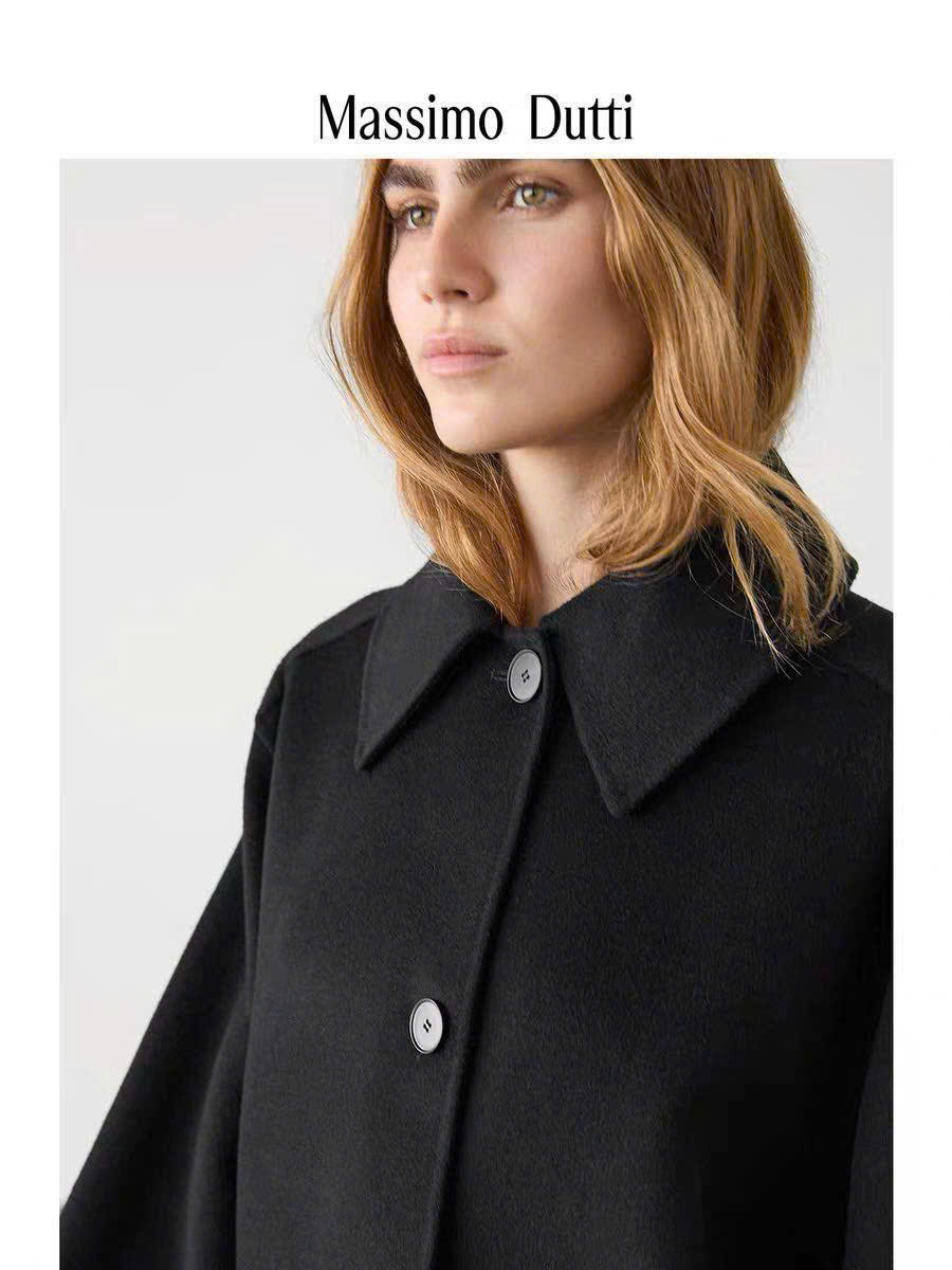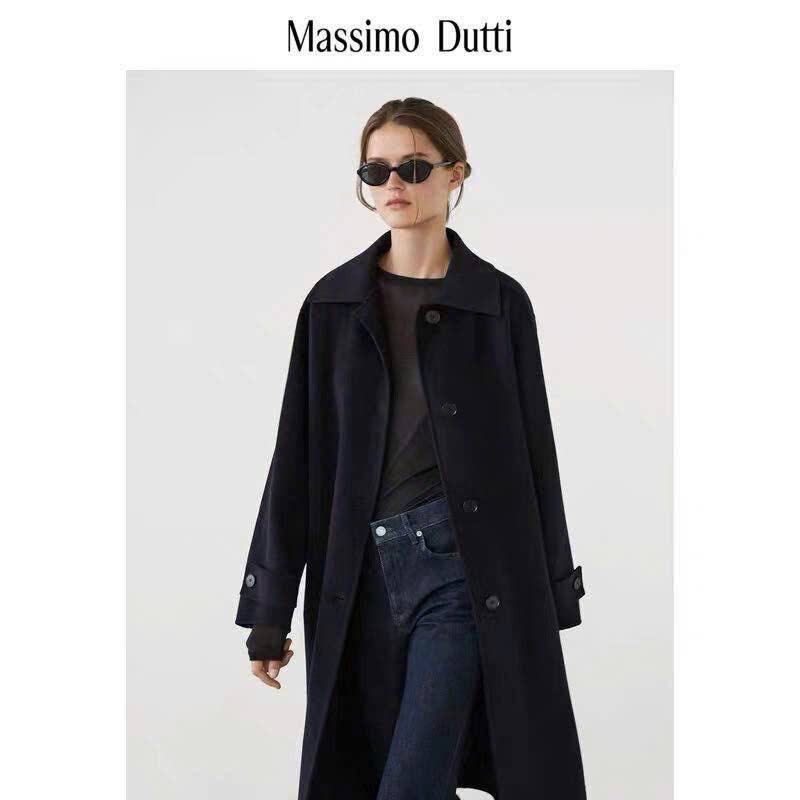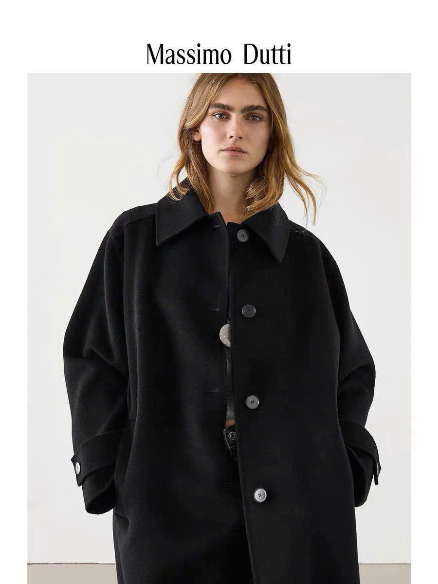 Longcoat dạ ép Massimo Dutti đen xẻ sau