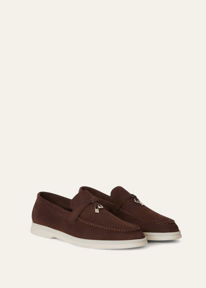 Đế chống trượt với logo Loro Piana dập nổi toàn bộ. Có khoảng trống riêng ở gót giày để bạn có thể viết tên mình, giống như giày thuyền truyền thống. Thành phần: 100% da lộn Đặc điểm cụ thể: Lớp lót: 100% da bê; Đế: 100% cao su