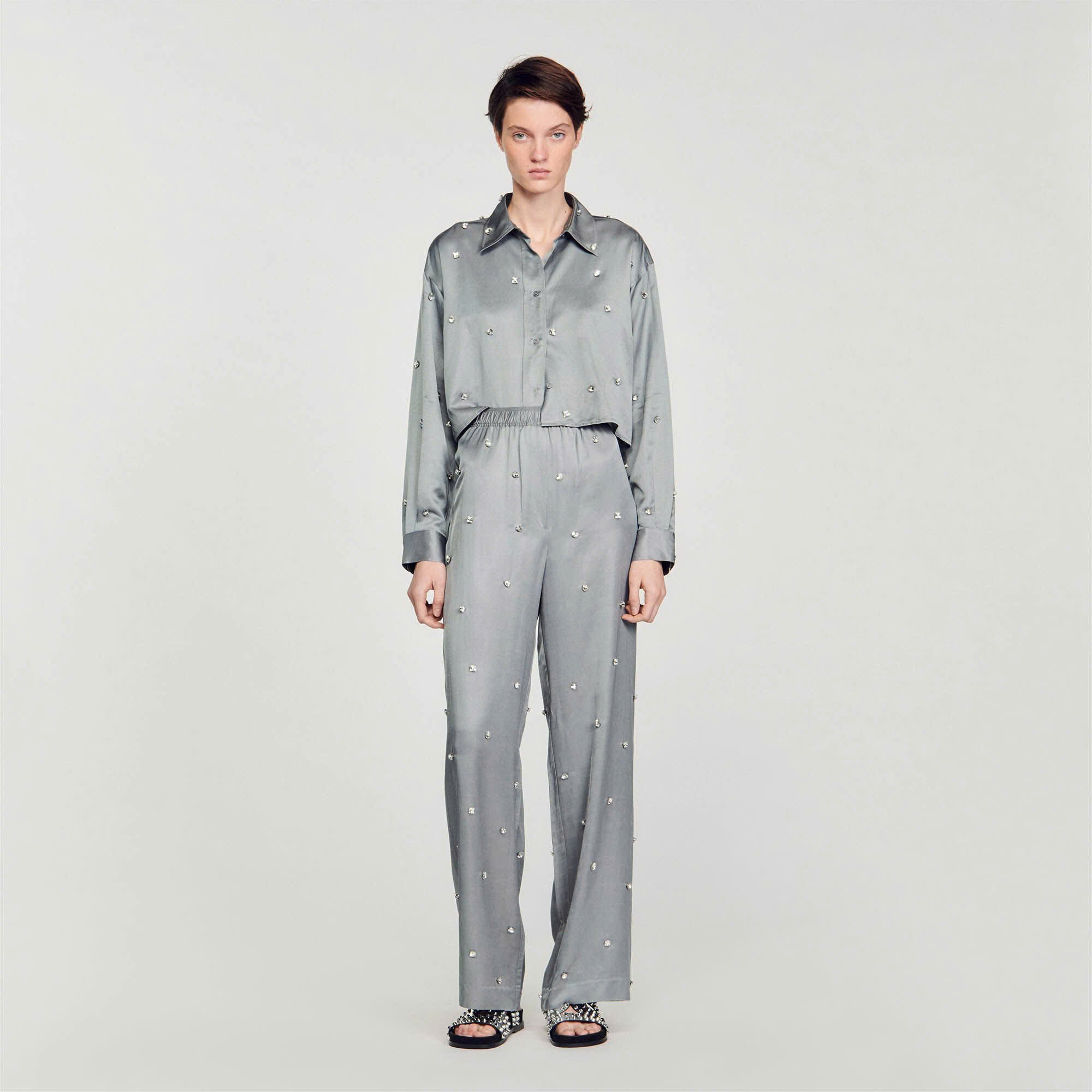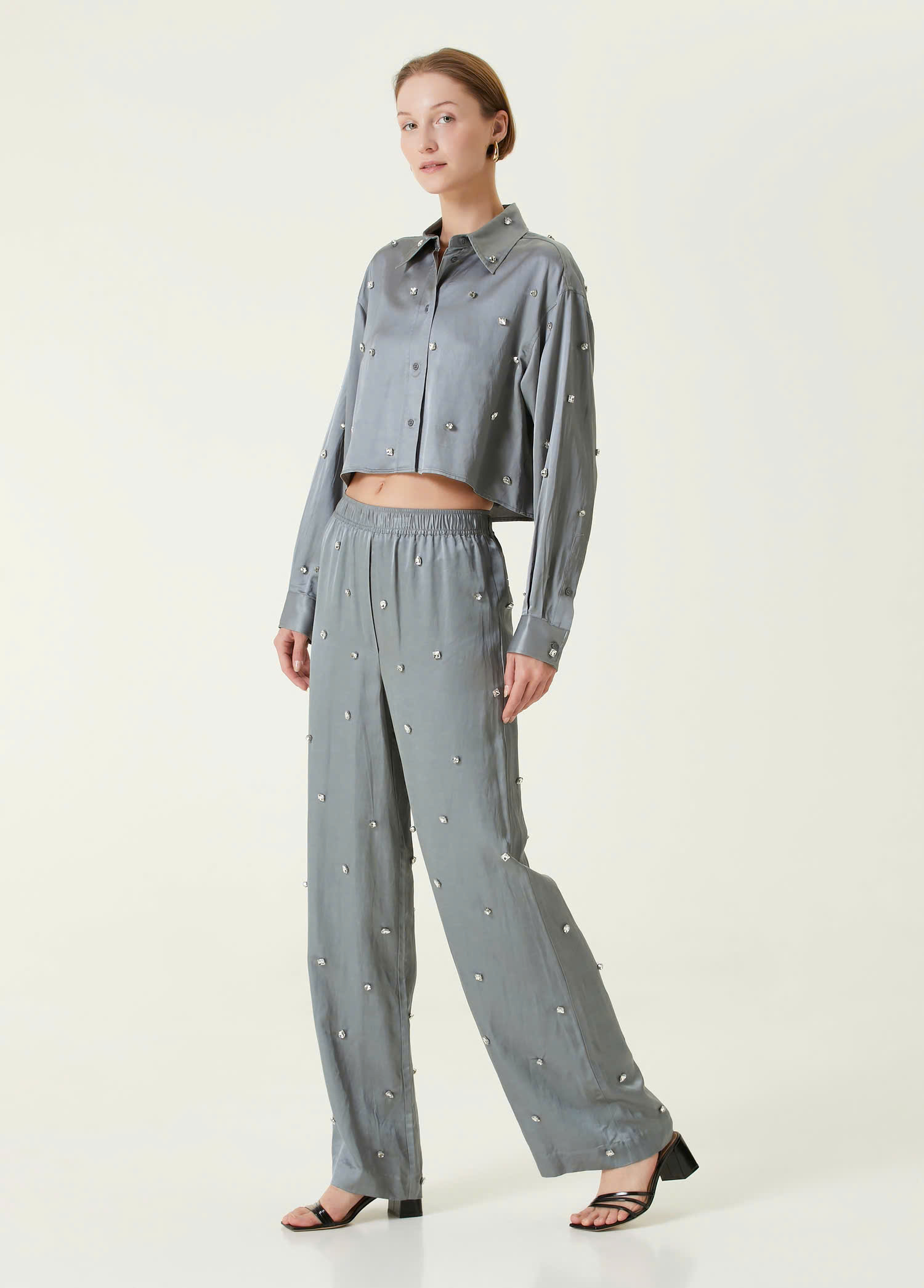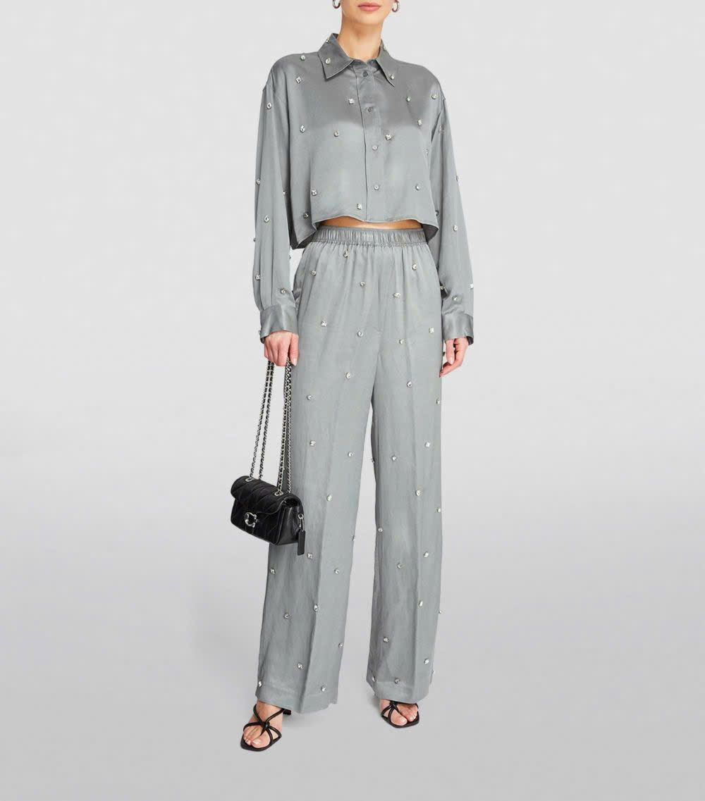 Chất liệu chính: 82% viscose, 18% vải lanh Diamante: 50% thép, 50% thủy tinh