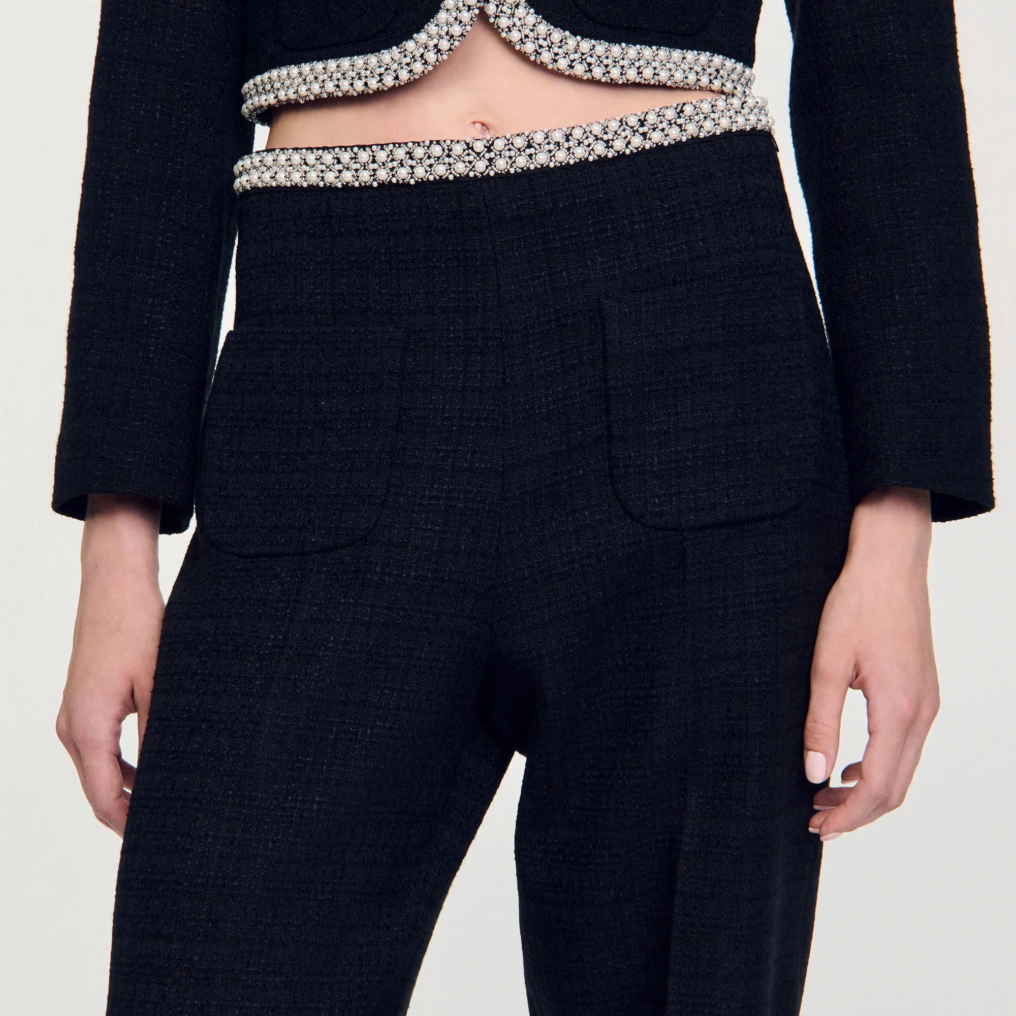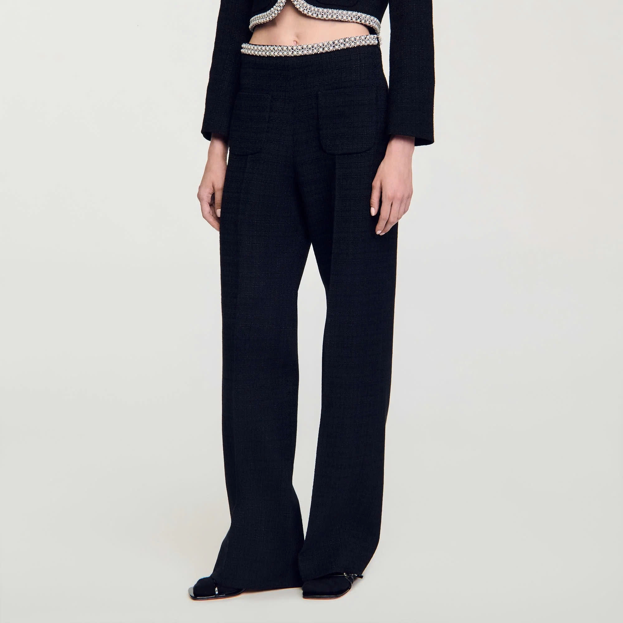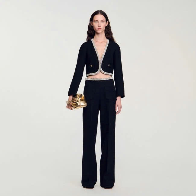 Quần suông dạ tweed Sandro đen viền ngọc trai (set 3pcs tách)