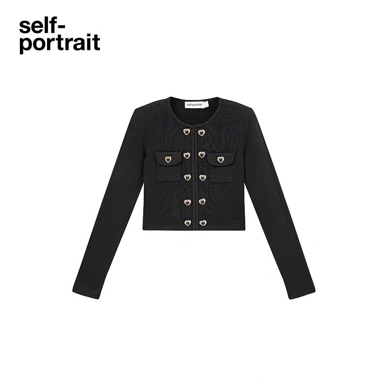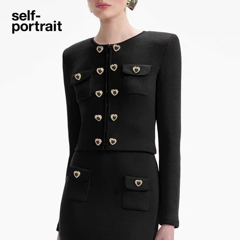 Áo khoác dệt kim thiết kế màu đen có nút hình trái tim