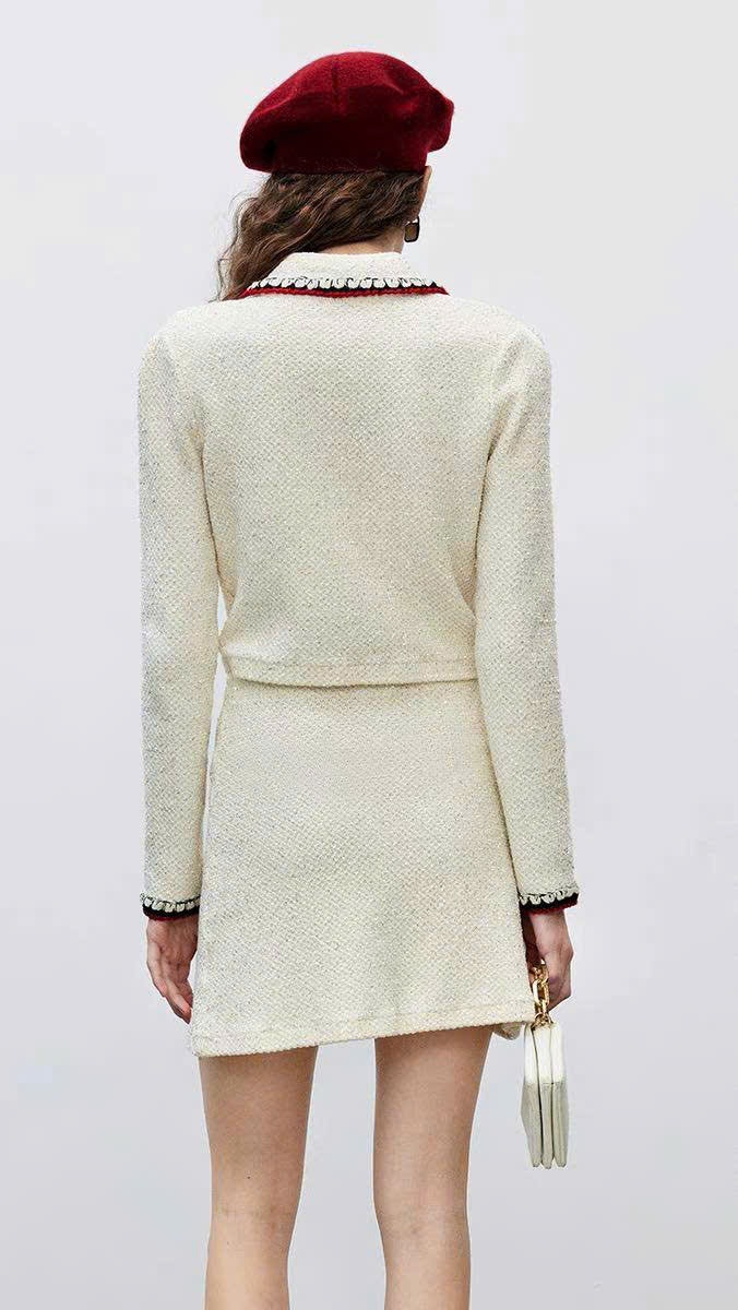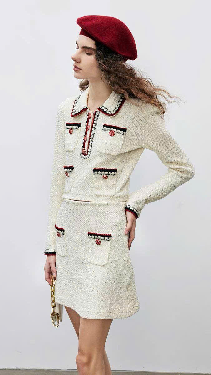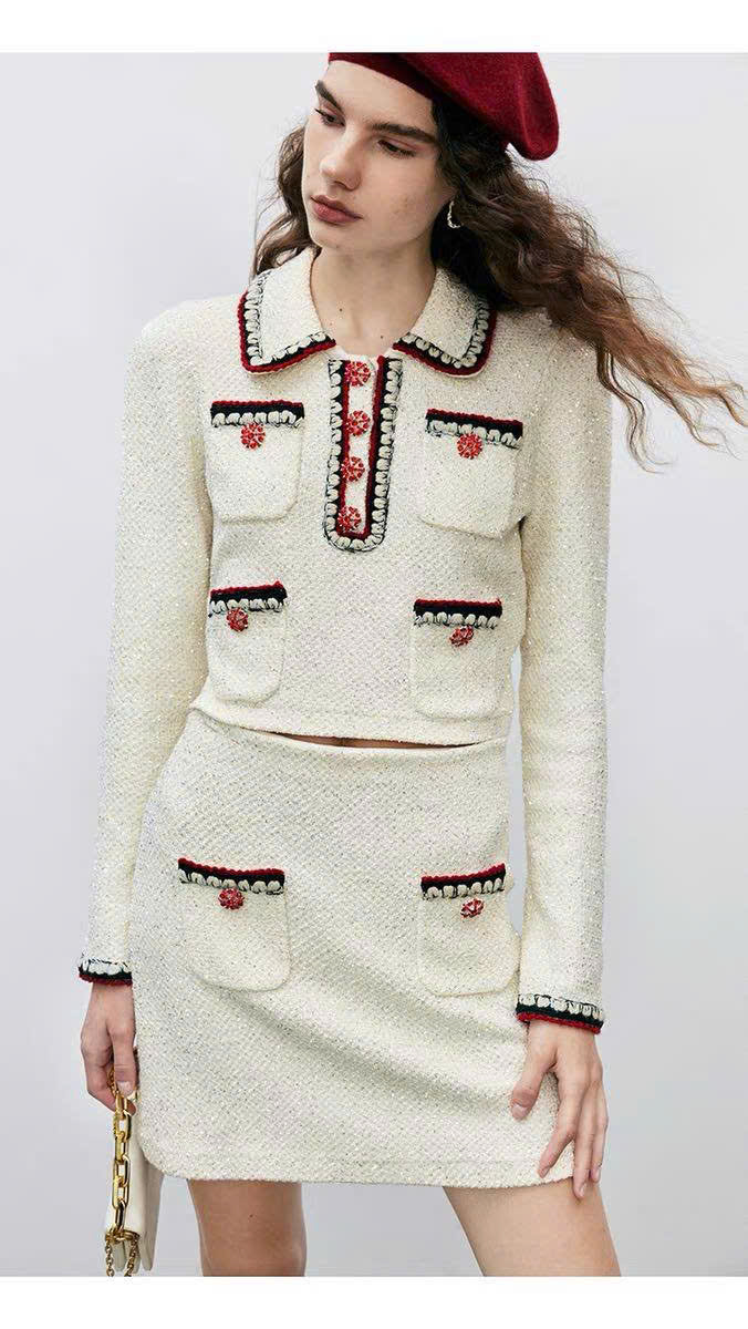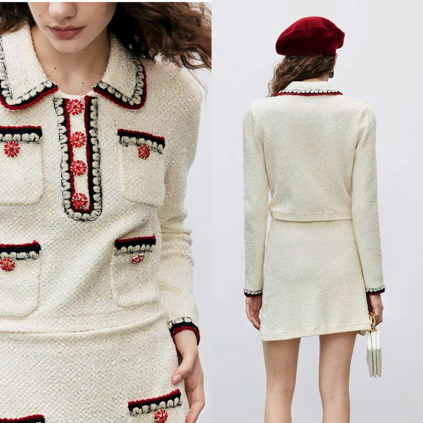 Set len dạ Sel-Portrait đen viền đá đỏ