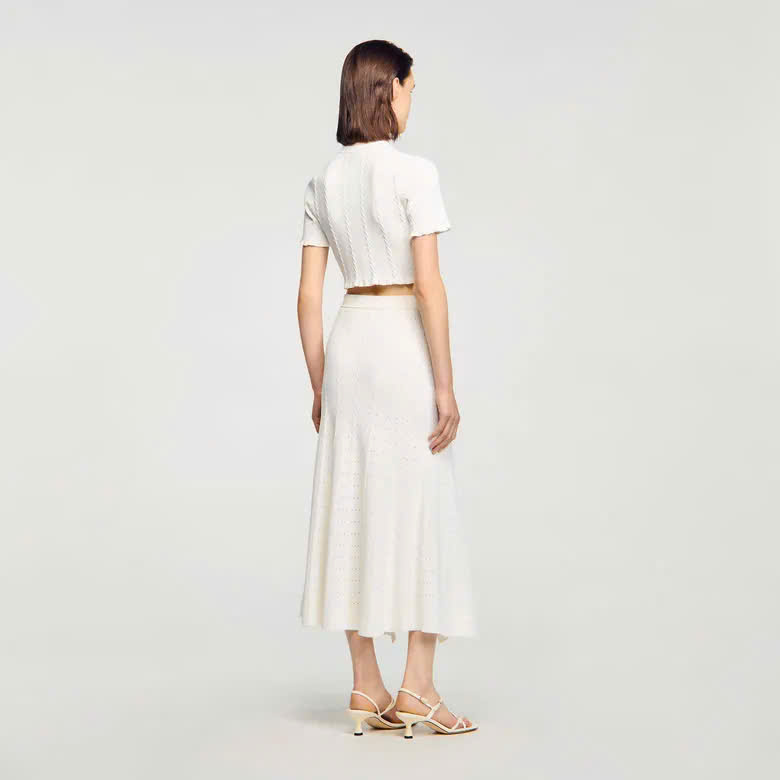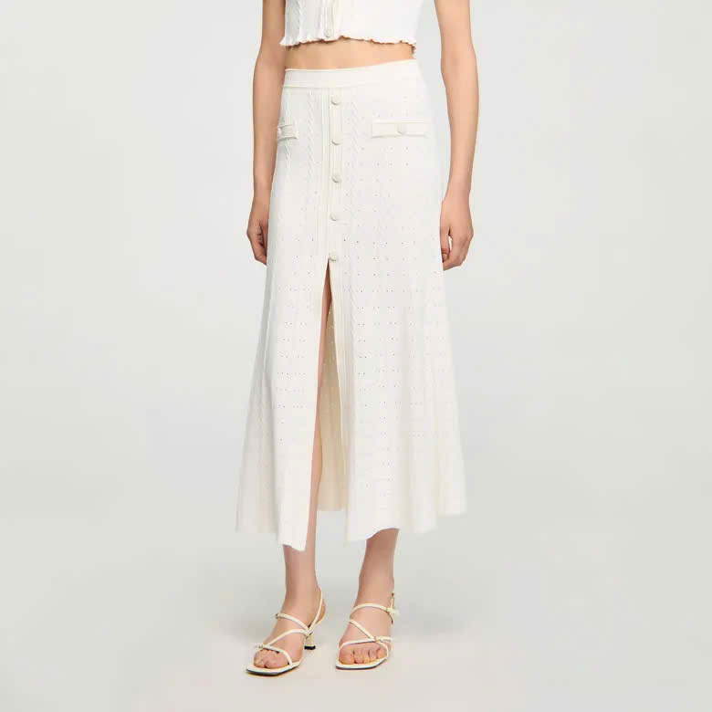 • Chân váy midi pointelle đan len nữ Sandro