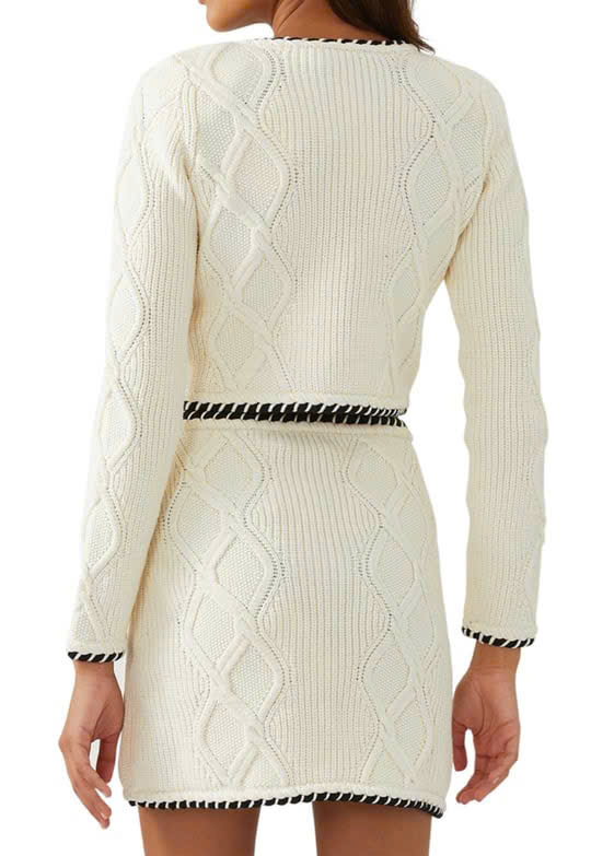 Set Áo cardigan đan/Chân váy midi có đường xẻ