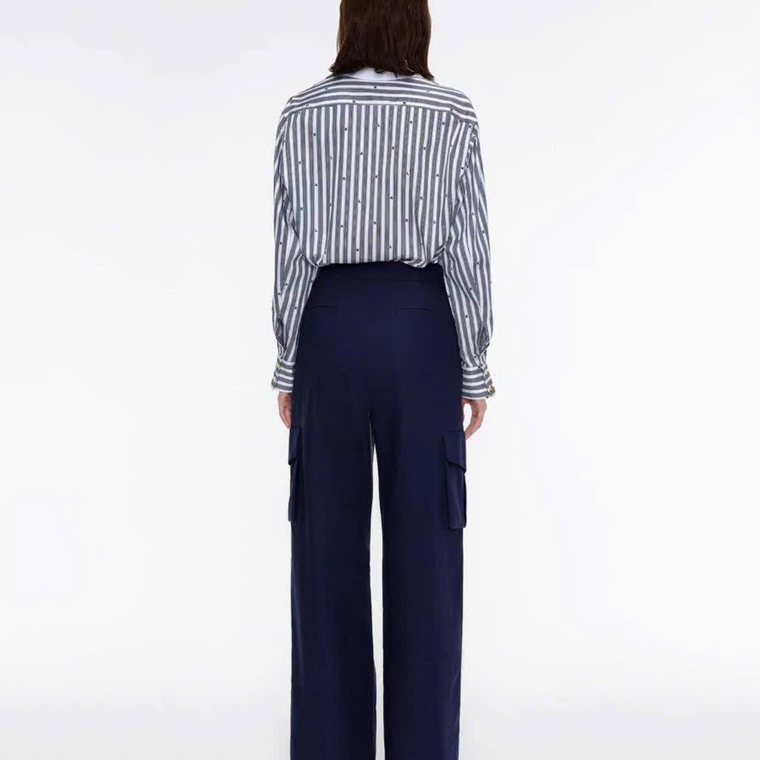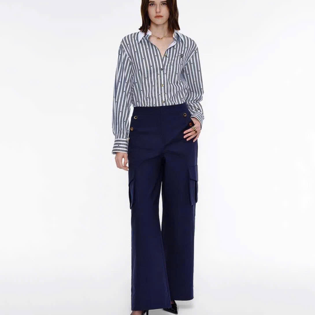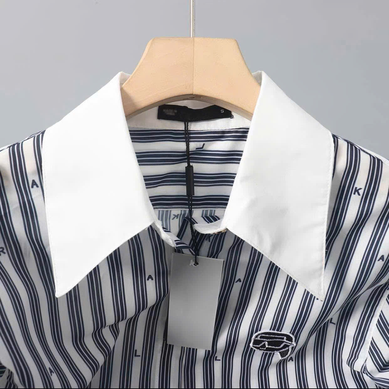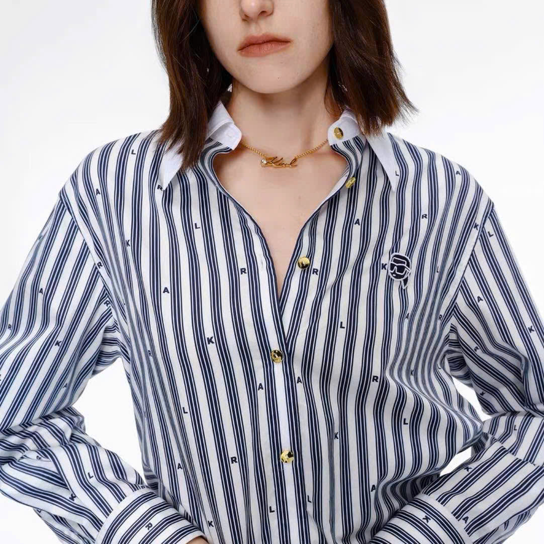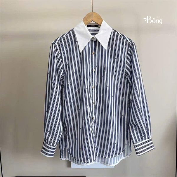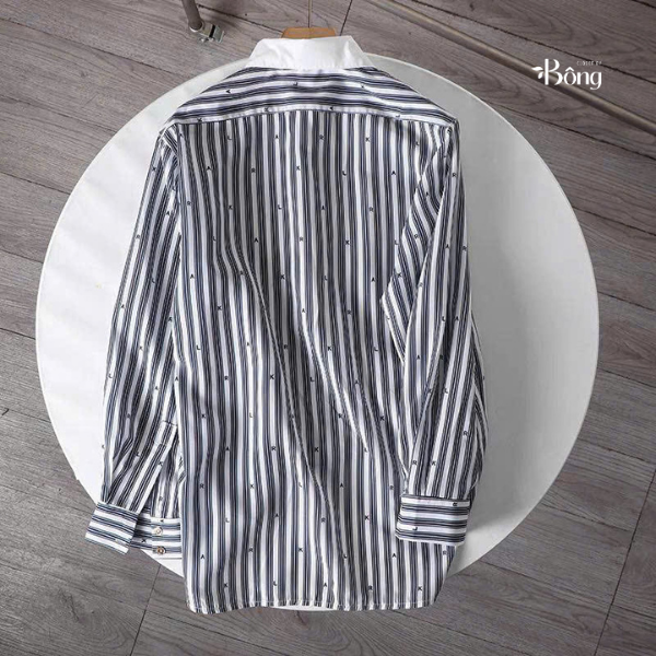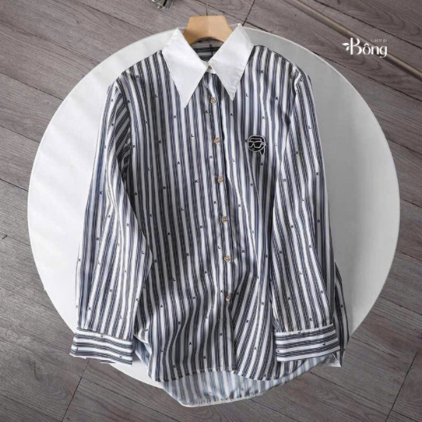 Sơ mi Karl cổ đức kẻ sọc cổ trắng