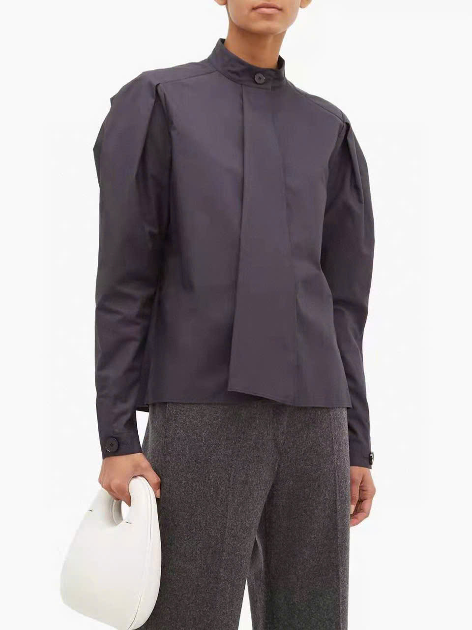 Sơ mi Lemaire cổ trụ vạt lệch dấu cúc