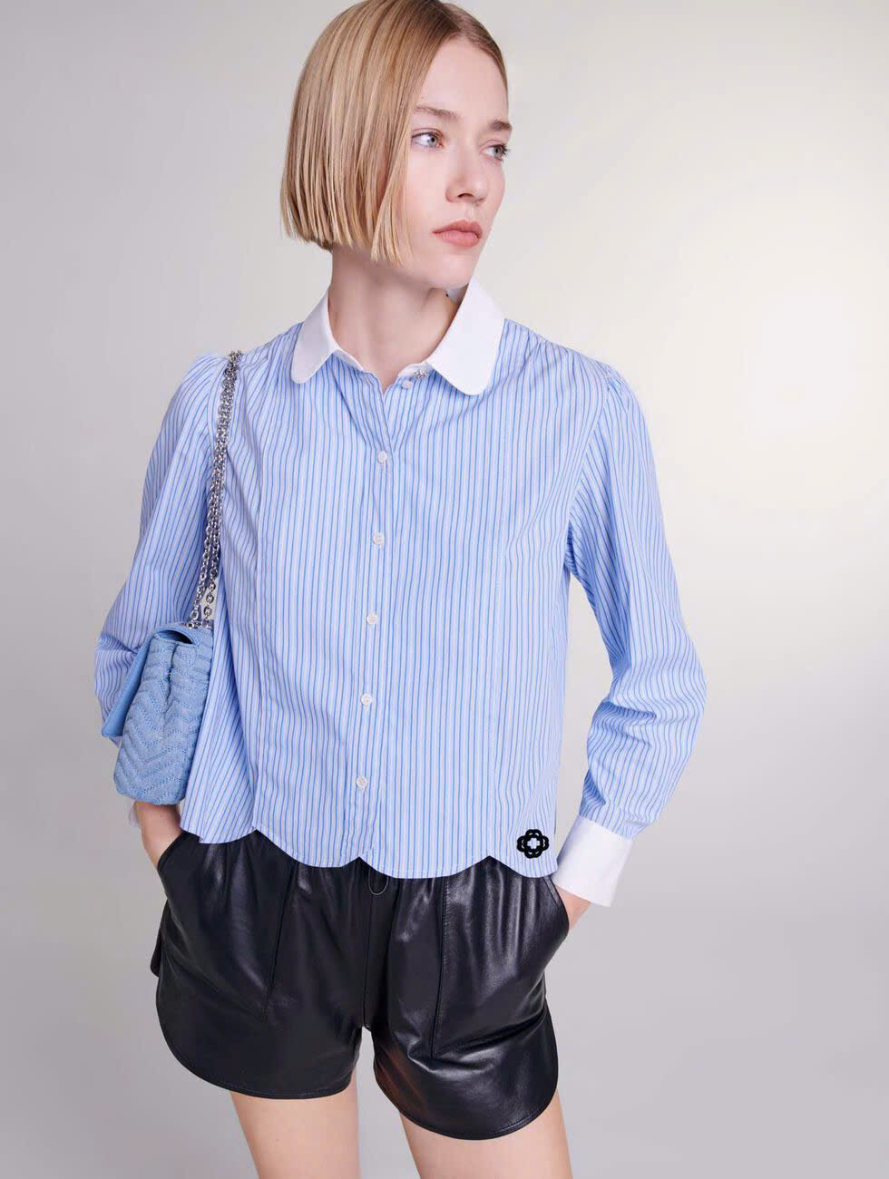Sơ mi Maje kẻ xanh cổ trắng