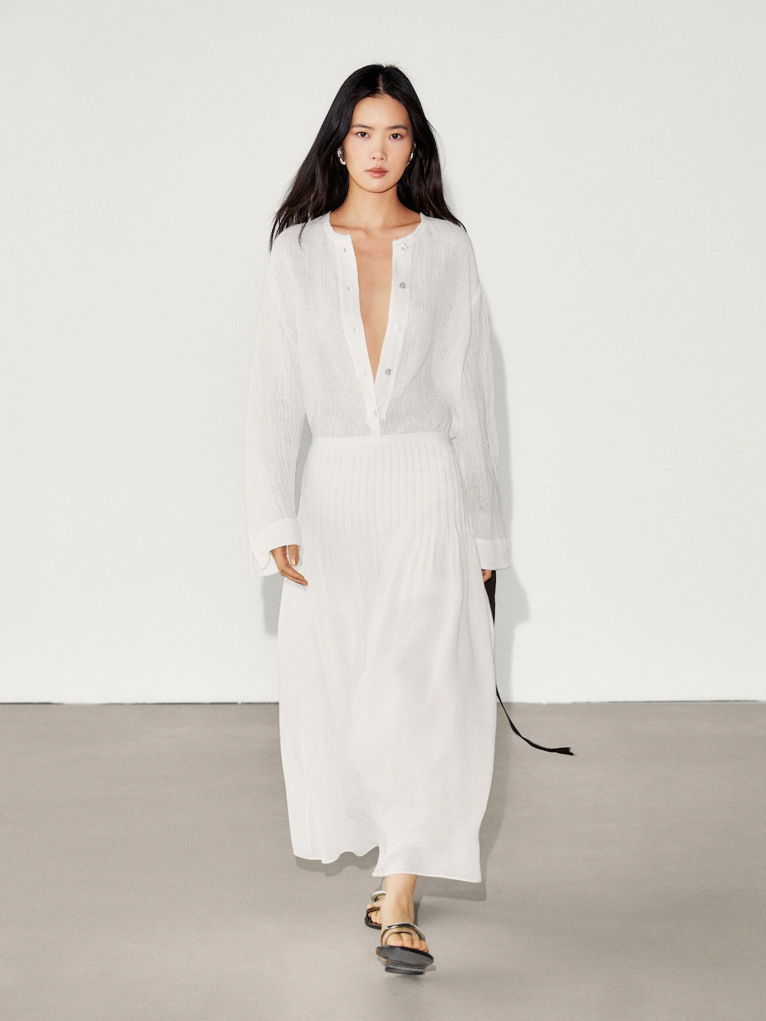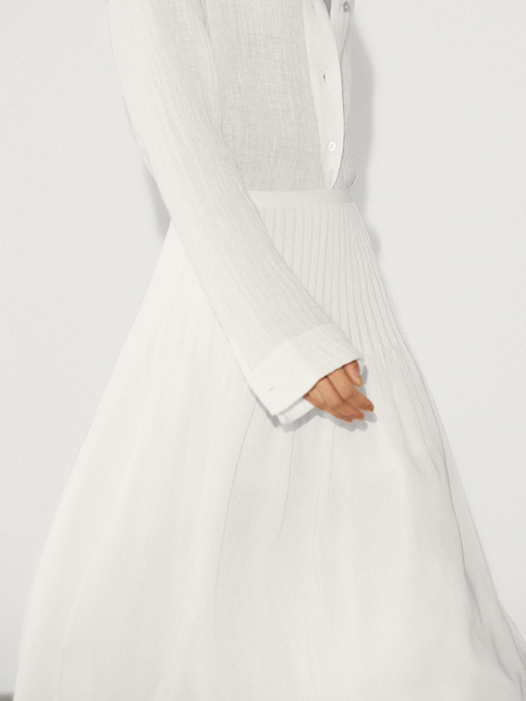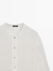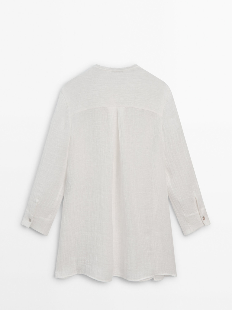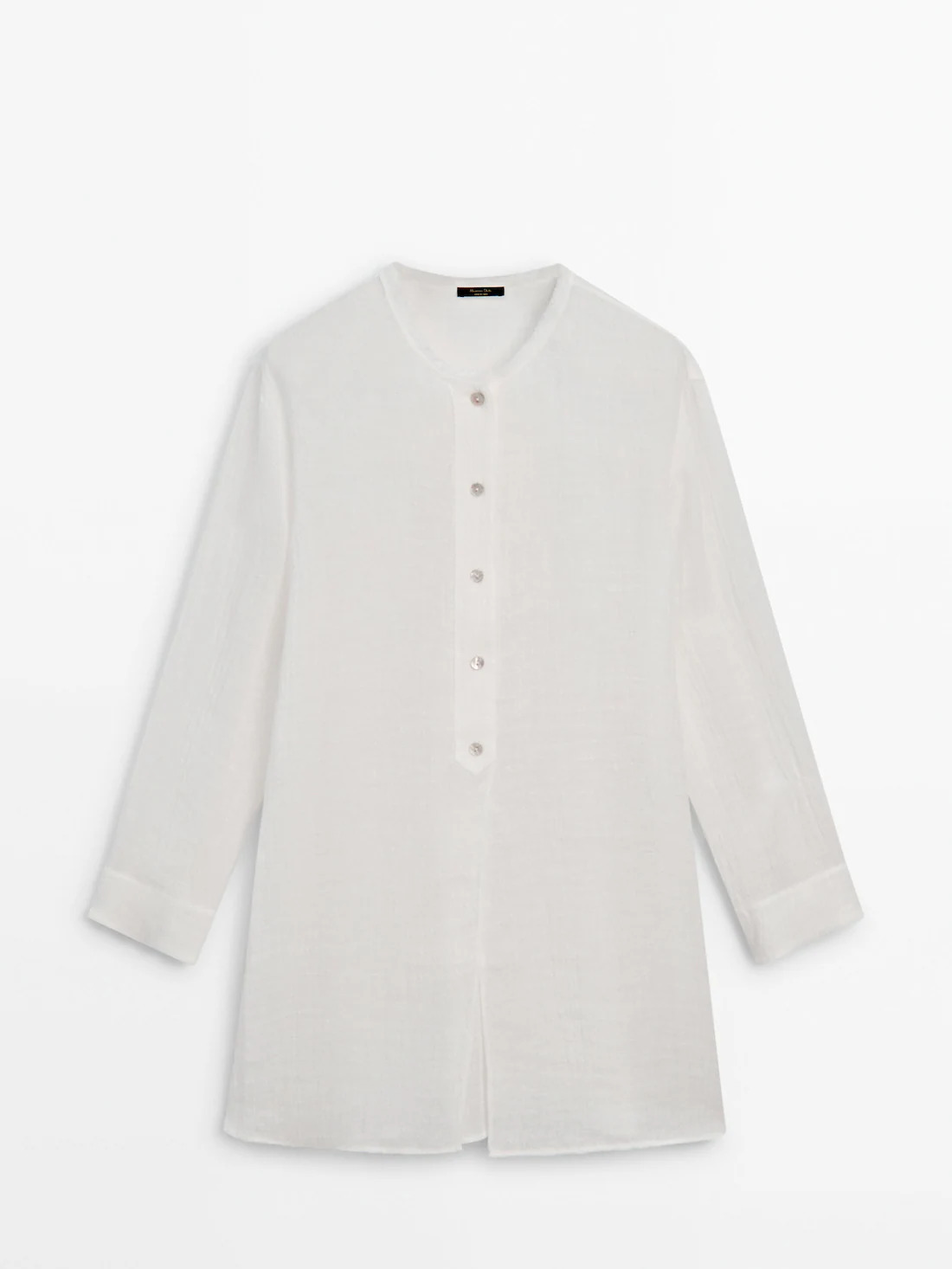 Cổ tròn. Tay dài. Cổ tay cài nút. Cài nút phía trước.