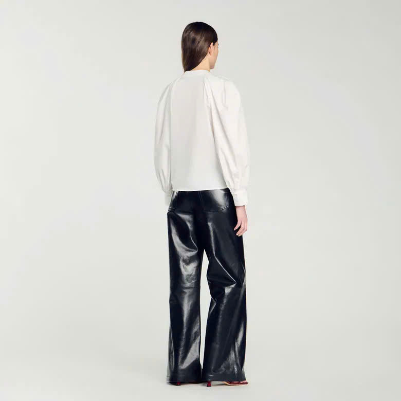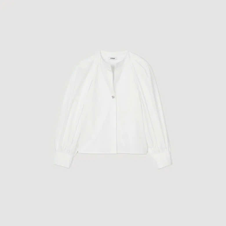 • Áo sơ mi poplin nữ Sandro • Cổ tròn với đường viền rộng • Tay áo dài, rộng với khuy cài ở cổ tay • Khuy đá trang trí chính: 97% Cotton , 3% Elastane