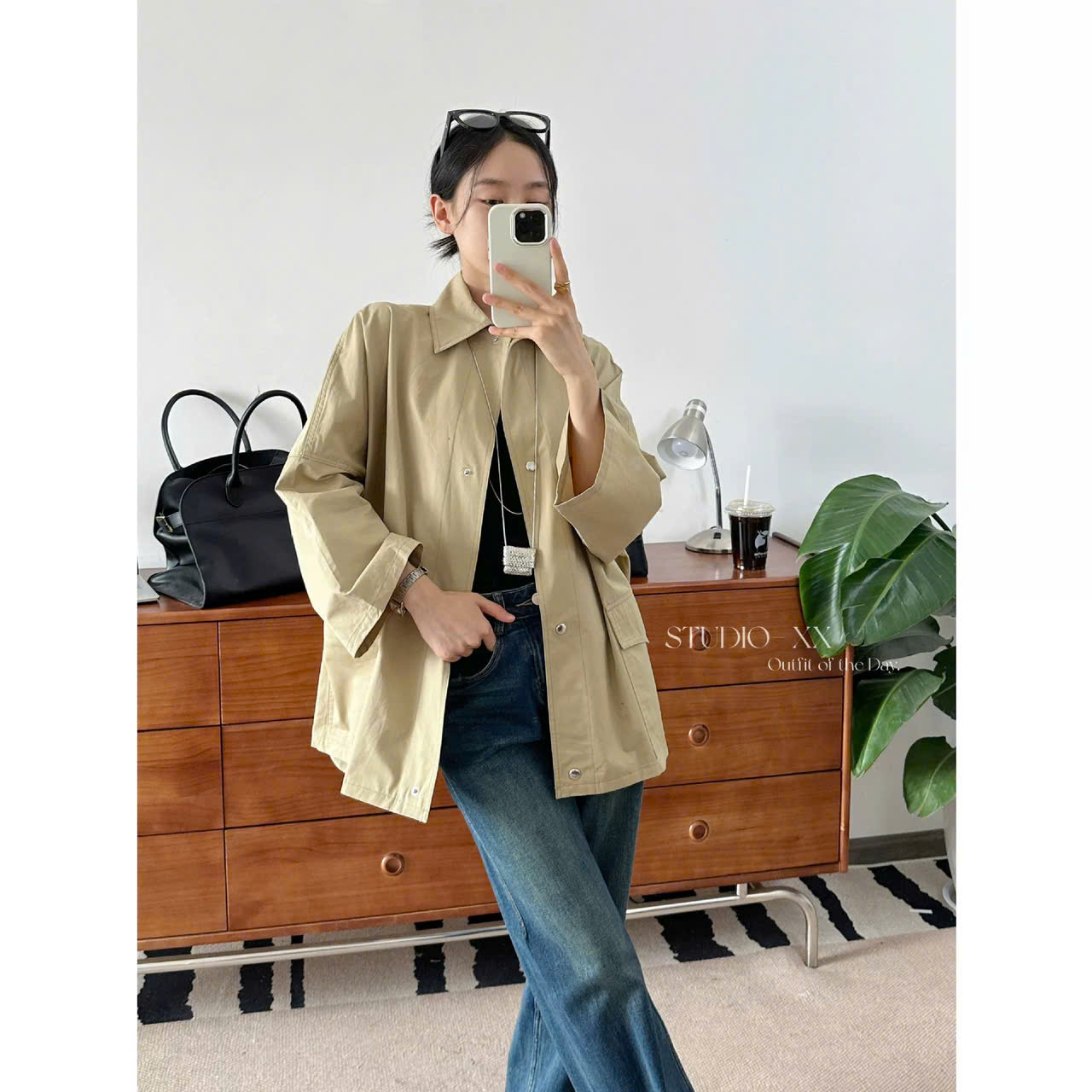 Áo khoác len Sandro dệt kim 2 hàng khuy viền trắng cổ tròn