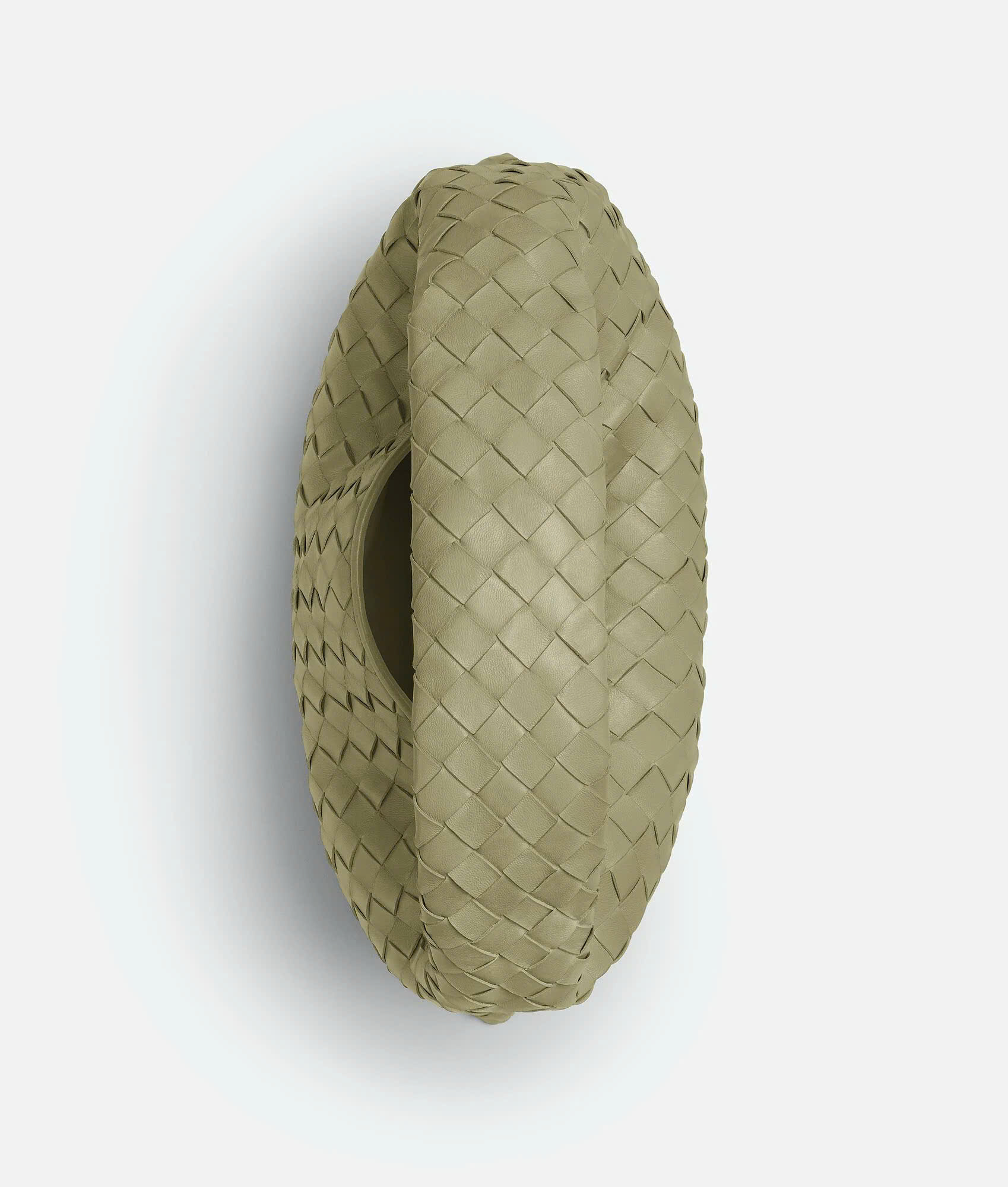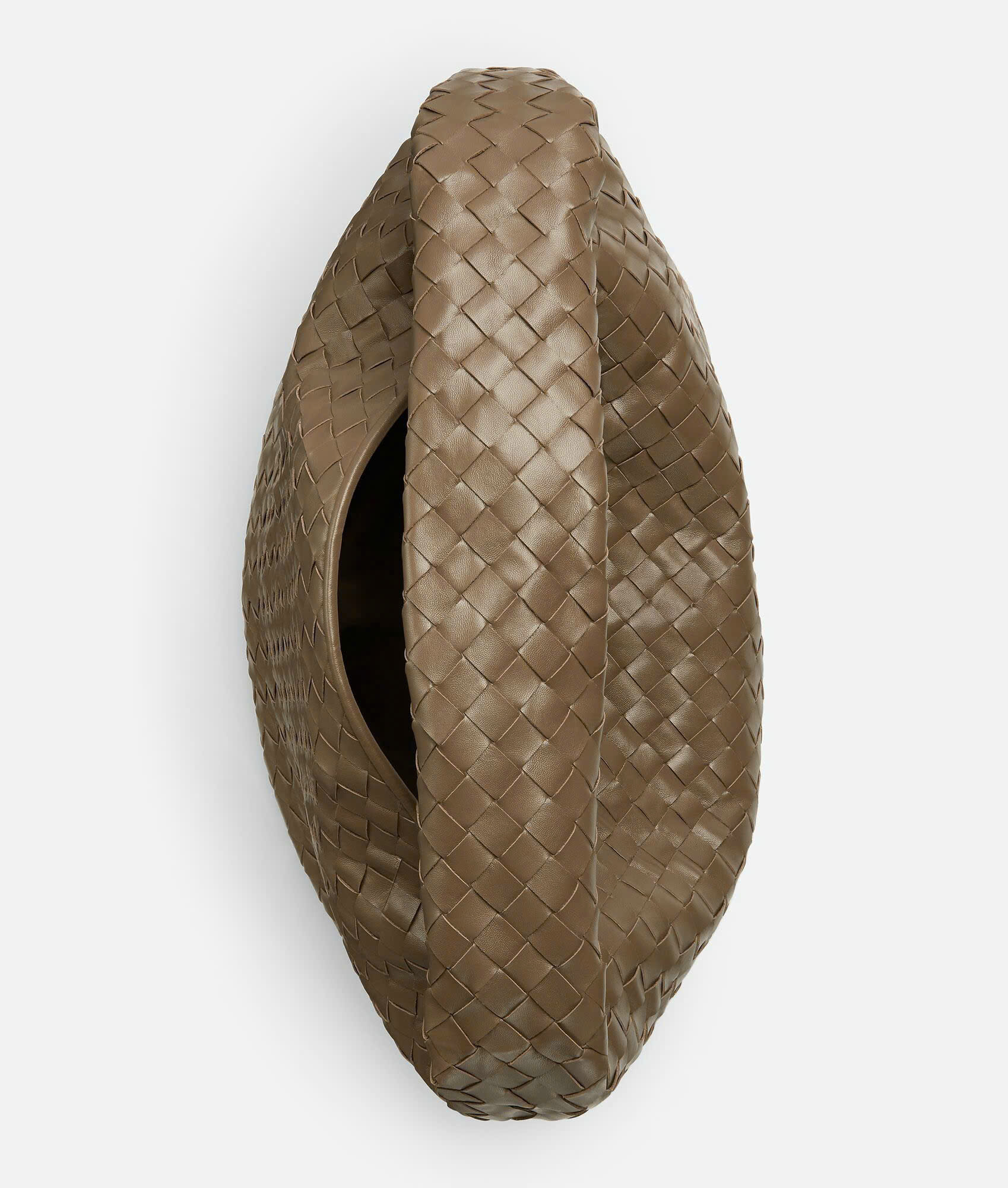 Túi đeo vai được chế tác thủ công bằng da bê theo công nghệ Intrecciato.