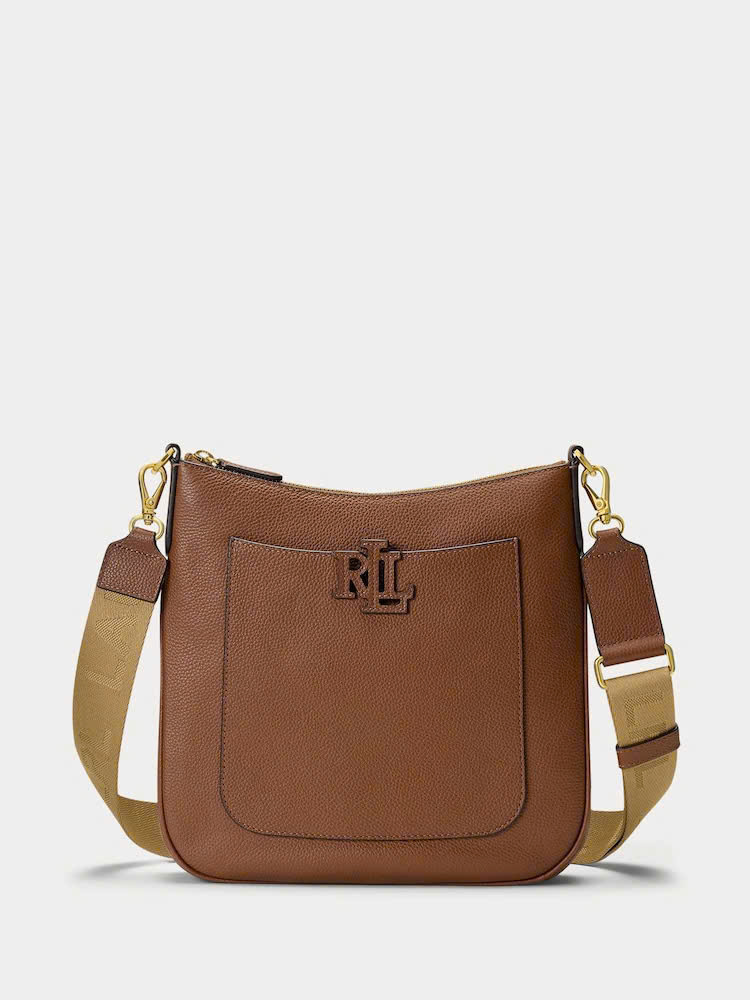 Khóa bấm từ tính. Logo da xếp chồng "LRL" ở mặt trước.