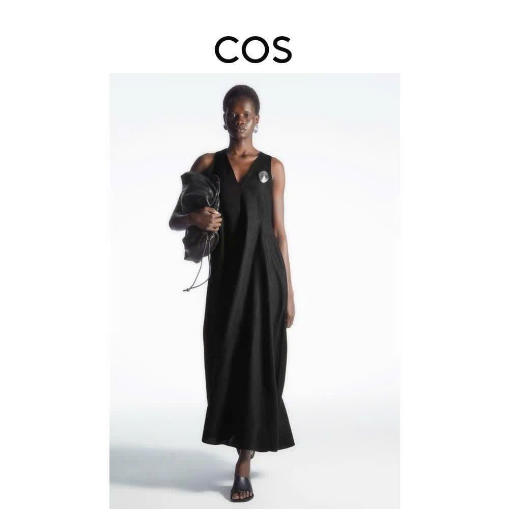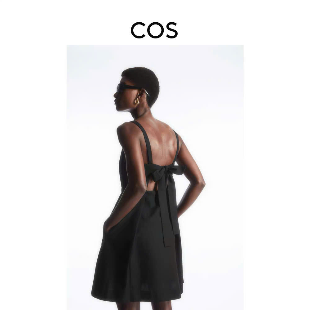 Váy 2 dây COS đen cột nơ lưng dáng ngắn