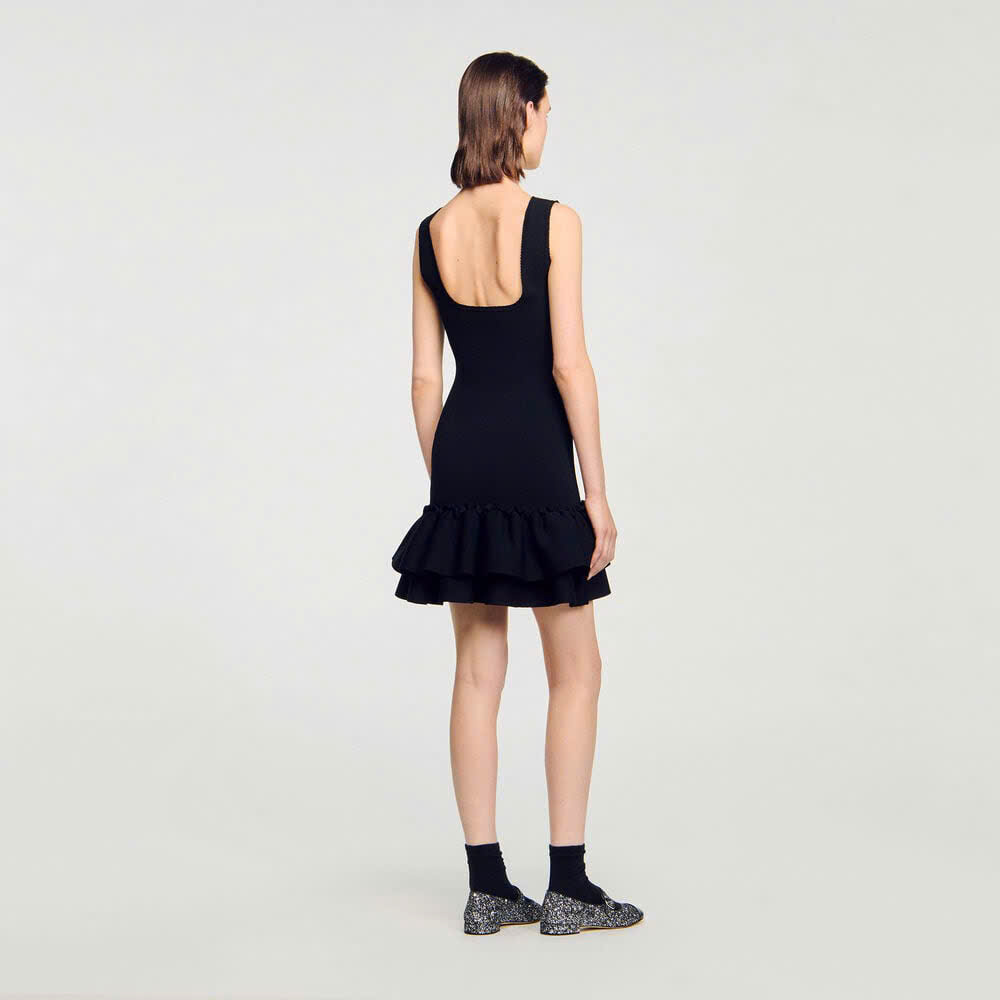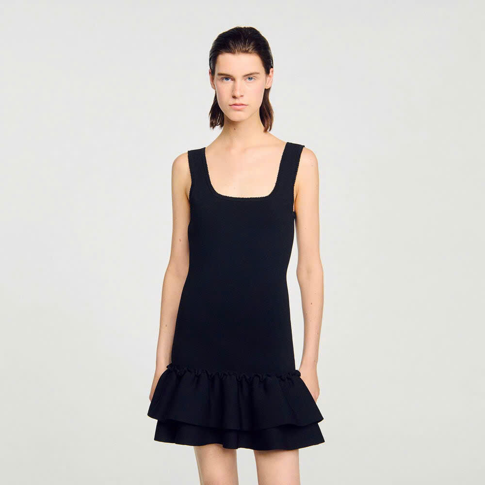 •Đầm ngắn dệt kim Sandro dành cho nữ •Dây đeo •Cổ vuông •Chân váy xếp ly đôi