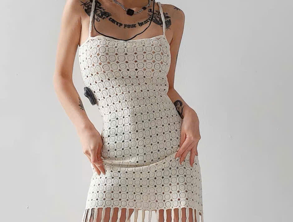 Váy 2 dây Zara đan móc tua rua