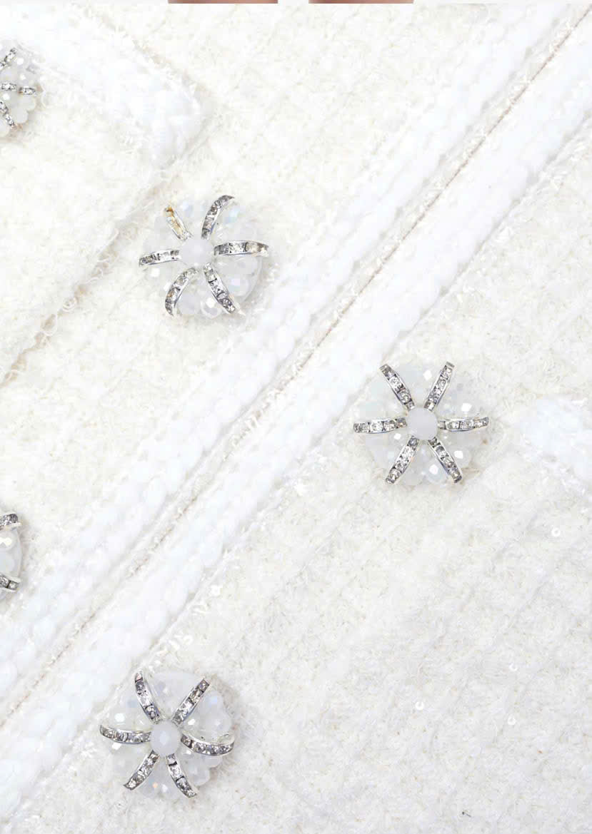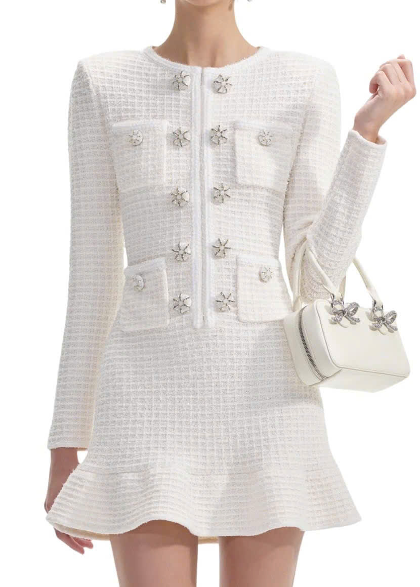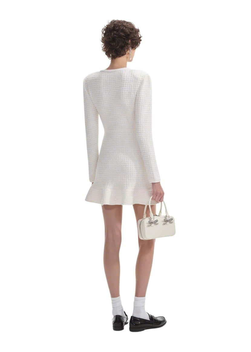 Váy nữ thời trang Self-Portrait với chất liệu dệt kim họa tiết và co giãn. Váy được trang trí bằng cúc và túi trang trí, ôm sát cơ thể với phần chân váy xòe.