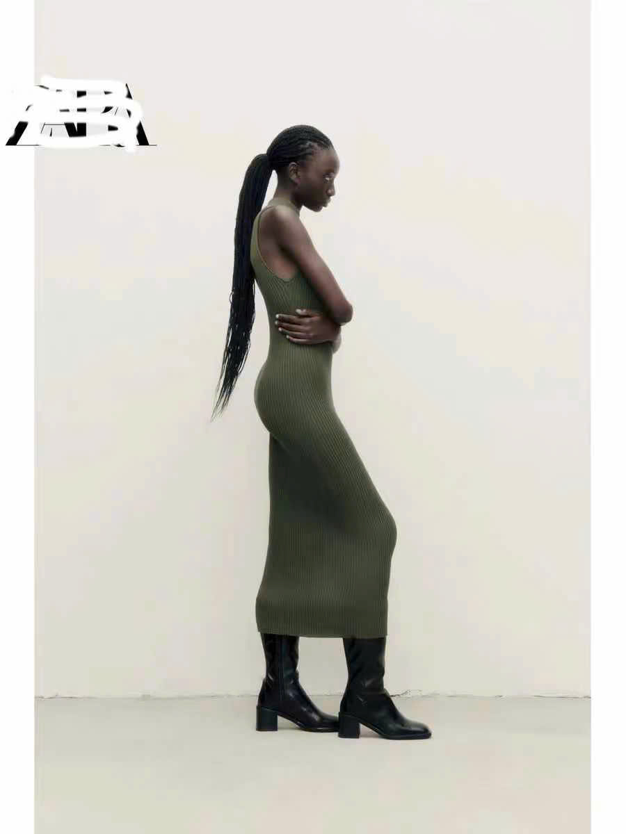 Váy MIDI dệt kim họa tiết hoa màu đen