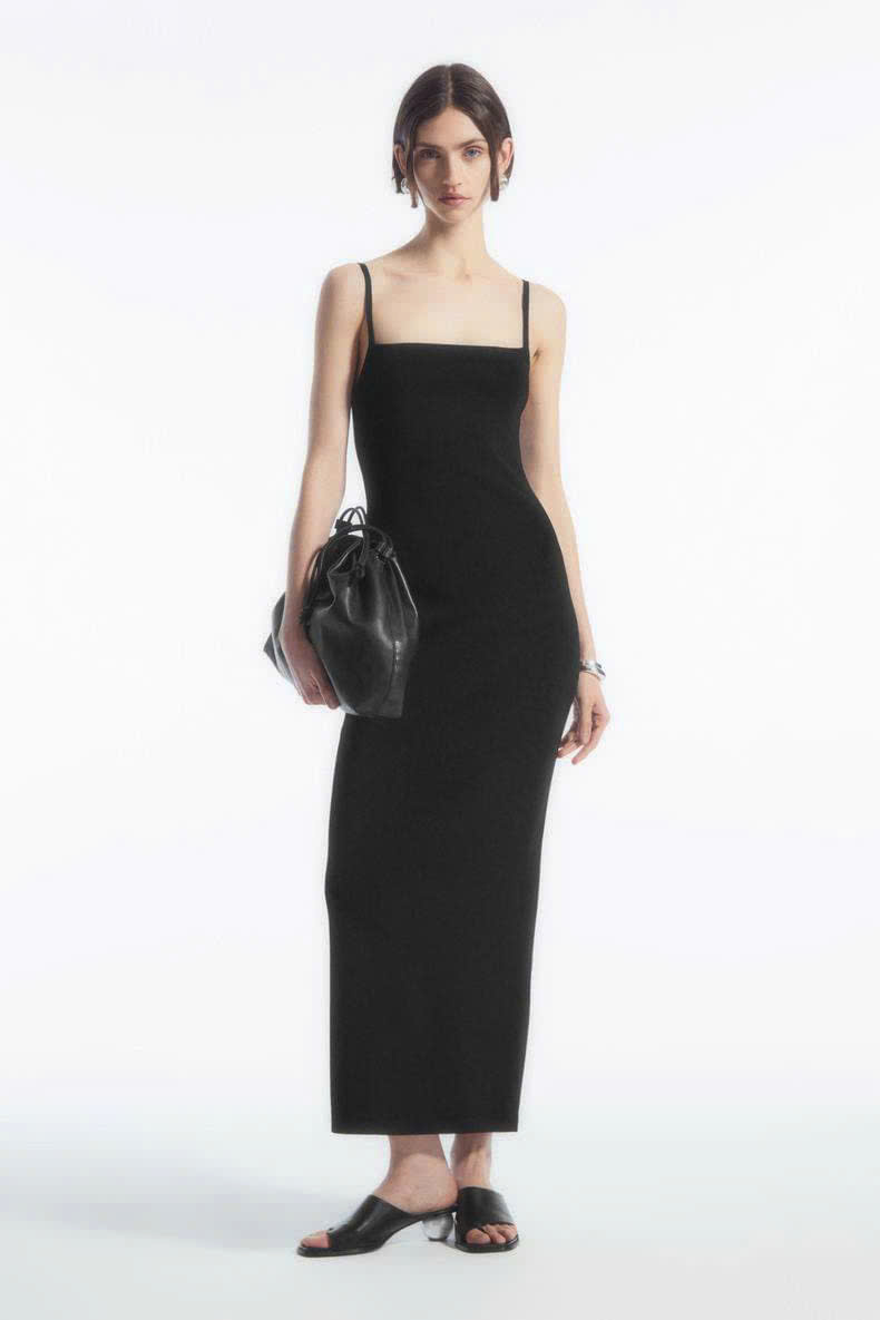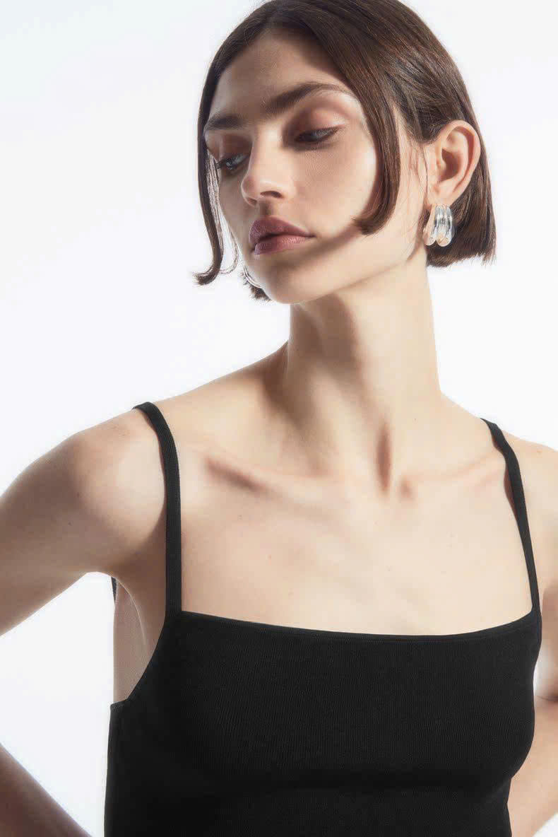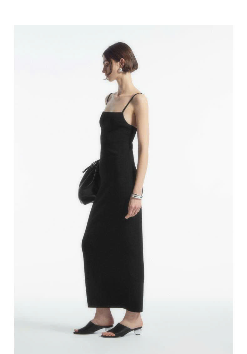 Váy len tăm COS 2 dây dáng bút chì 2 màu