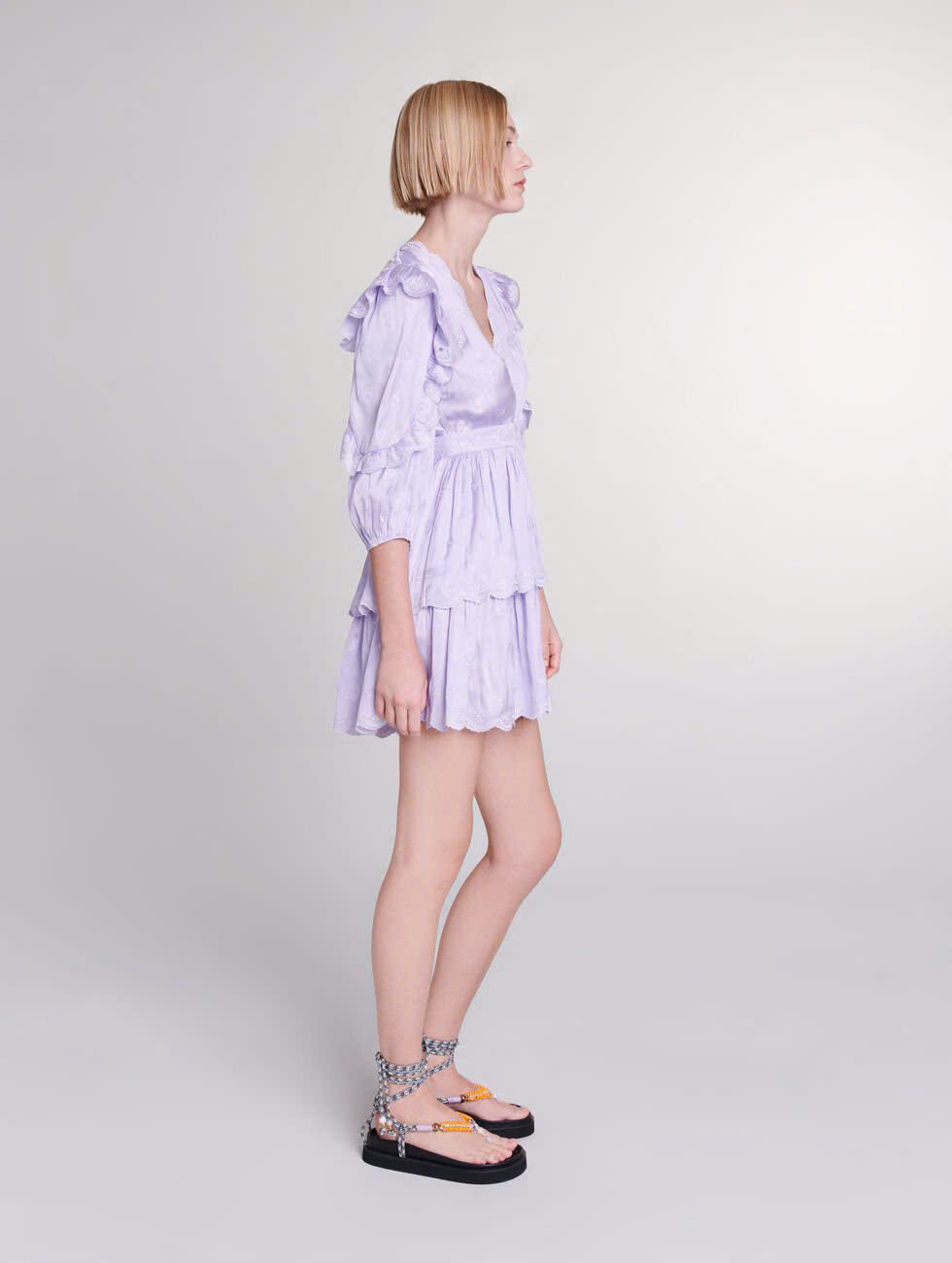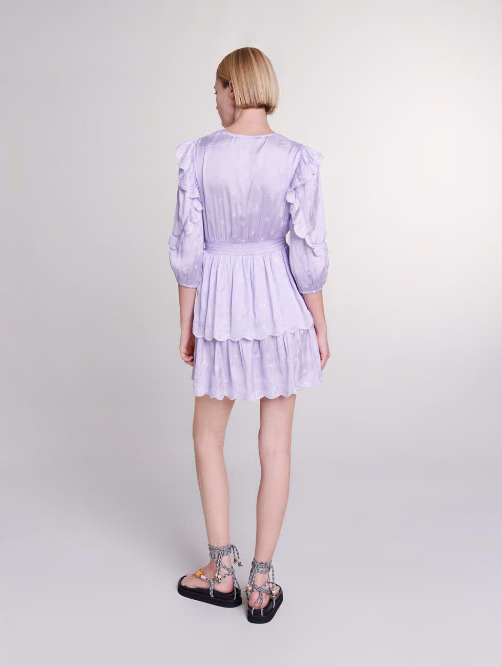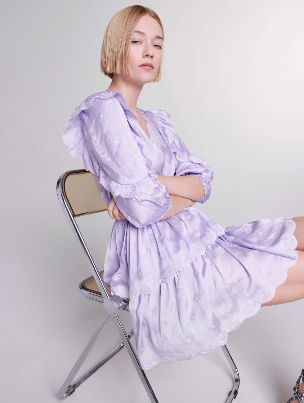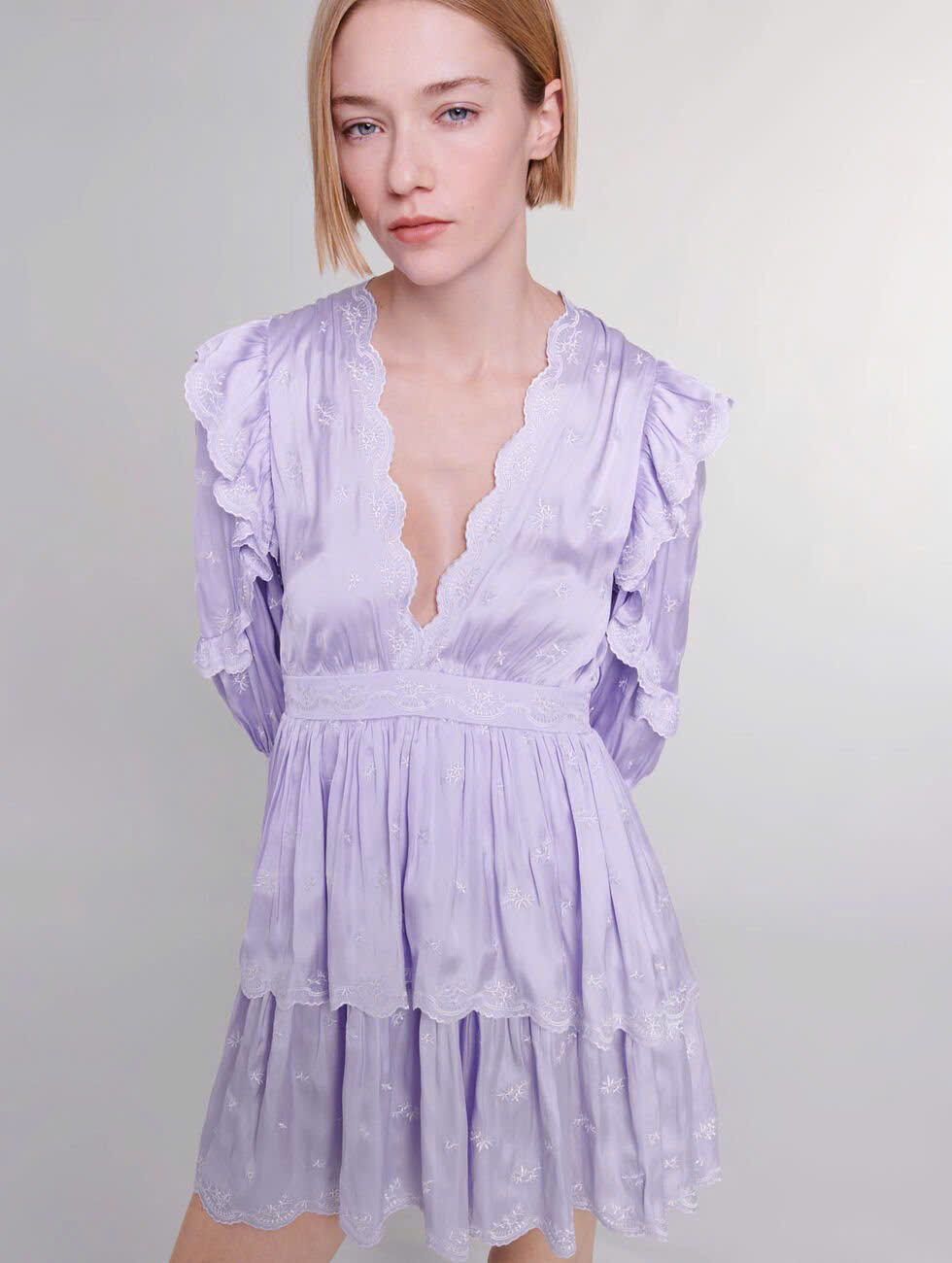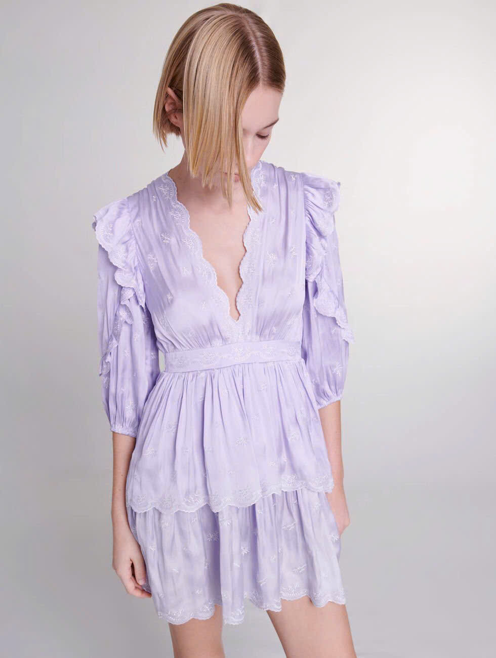 Vải: 100% polyester Thêu: 100% polyester Váy thêu ngắn chất liệu satin