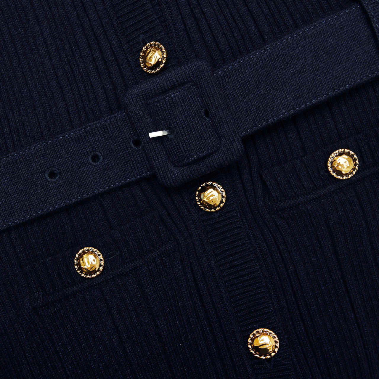 - Chất liệu đan - Cổ tròn - Tay dài - Bốn túi nắp nửa phía trước - Dáng midi - Cài nút phía trước