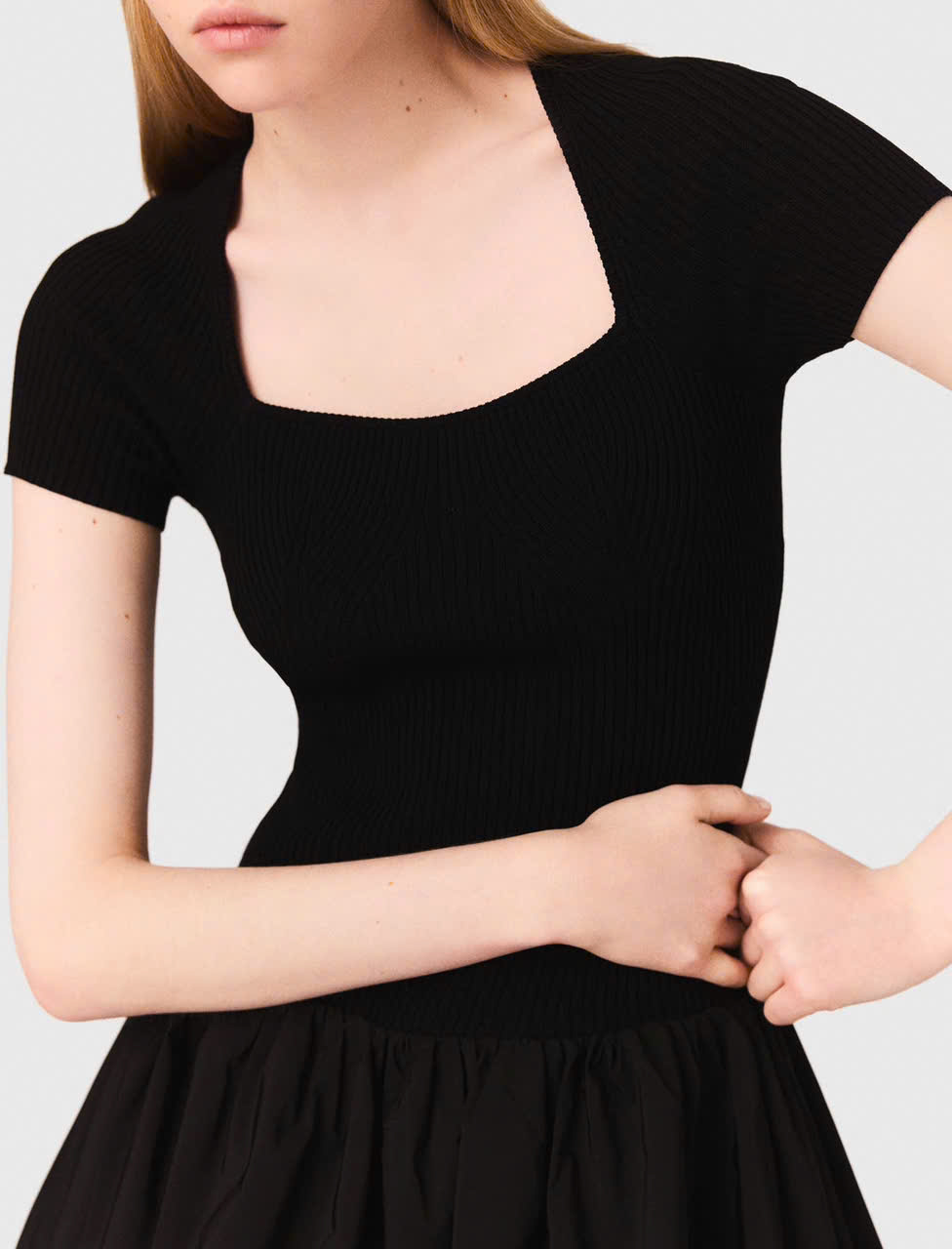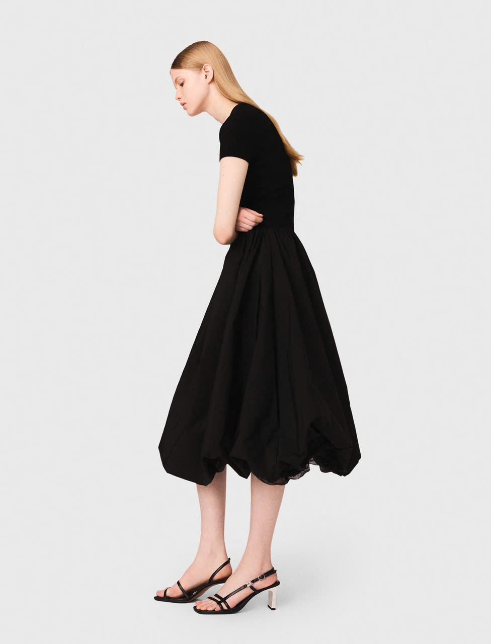 Váy MIDI dệt kim họa tiết hoa màu đen
