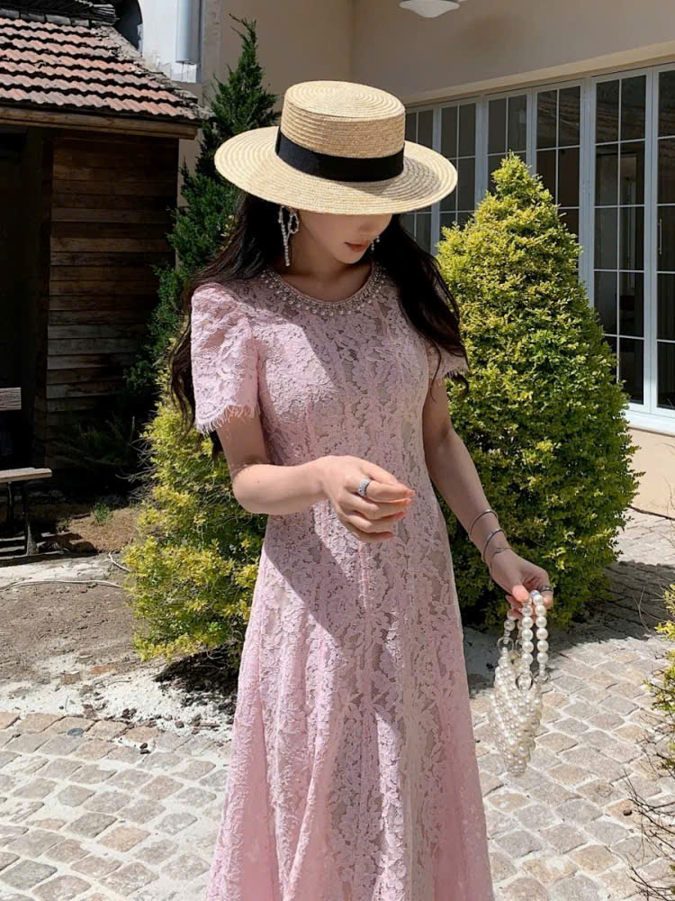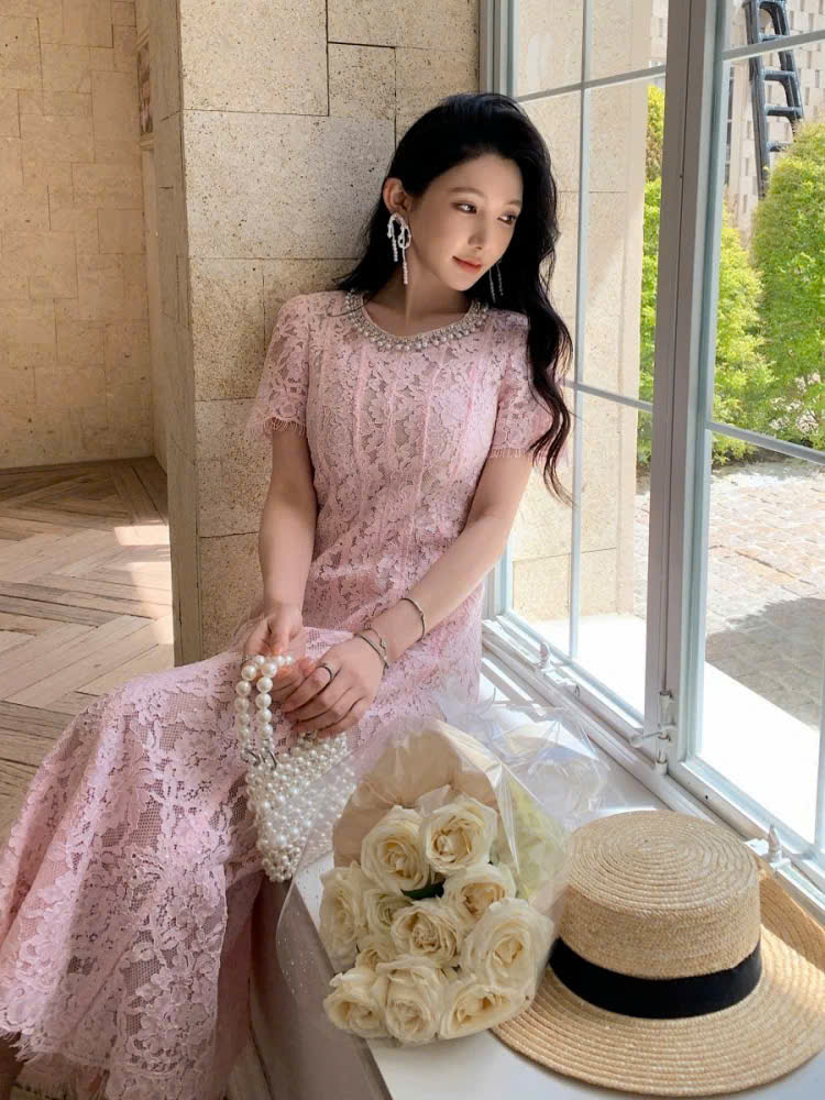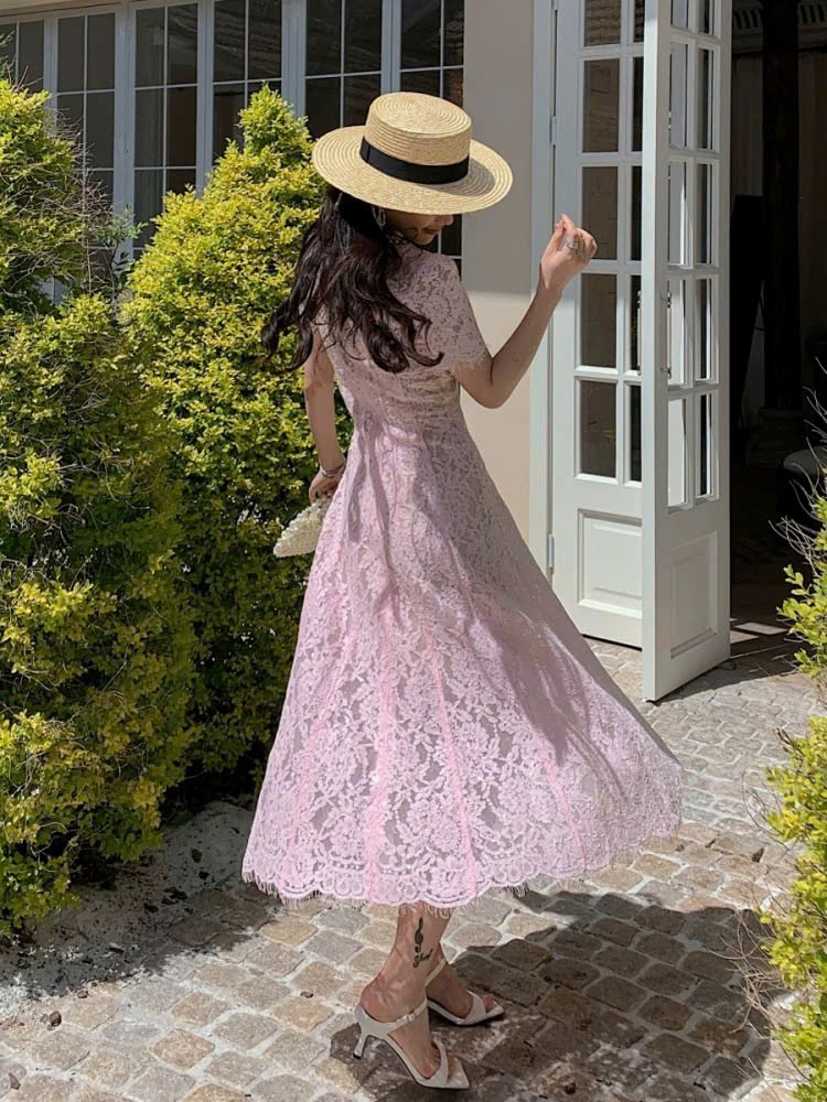 Một thiết kế lãng mạn với ren hồng nhạt, chiếc váy này kết hợp chất liệu đặc trưng của chúng tôi với kiểu dáng xòe bồng bềnh đầy nghệ thuật và những đường viền tinh tế