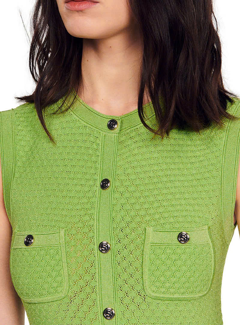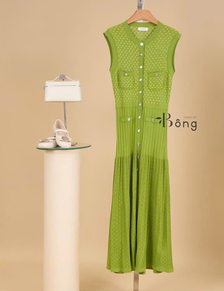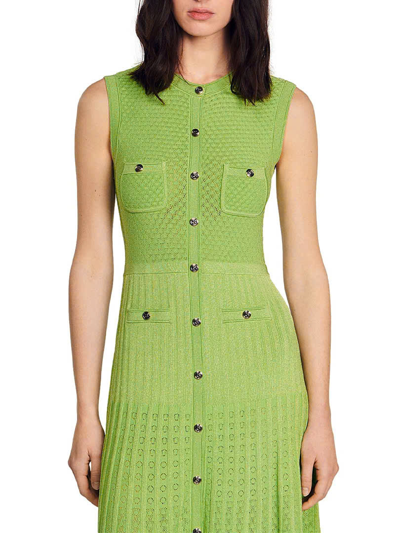 Váy sát nách Sandro len dệt khuy dọc